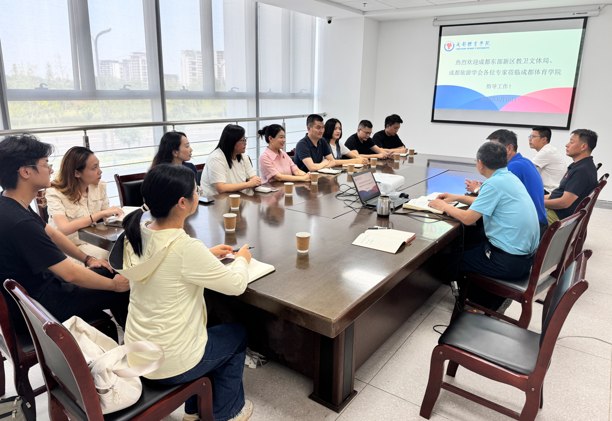 6月10日,成都东部新区管理委员会教育卫健和文旅体局文广旅处处长冯琴、成都旅游学会秘书长刘媛媛等一行10人到beat365唯一官方网站继续教育学院开展交流调研。四川省研学产业促进会、四川华西文化产业研究院、四川省研学旅游产业促进会、成都净土文化旅游资源开发有限公司等单位专家参与调研,继续教育学院领导班子、科以上干部、运动休闲学院社会体育指导与管理系主任徐鹏等老师参会。