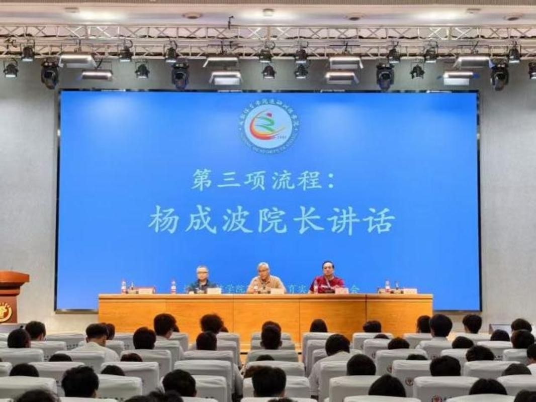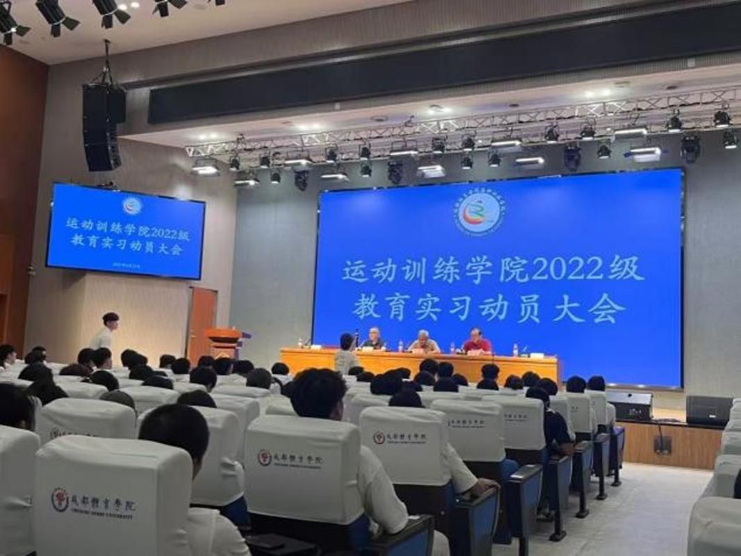 为切实提升运训学子的教育实践能力、做好实习准备工作,运动训练学院于6月25日在学术报告厅召开2022级实习动员大会暨教育实践专题讲座。运动训练学院院长杨成波、党委副书记朱勇、副院长罗勇、学管办辅导员及全体2022级学生参会。本次动员大会特别邀请成都市锦江区区教育科学研究院体育教研员、成都市学科带头人专家指导教师兰林,为即将实习的同学做专题讲座。会议由学院党委副书记朱勇主持。