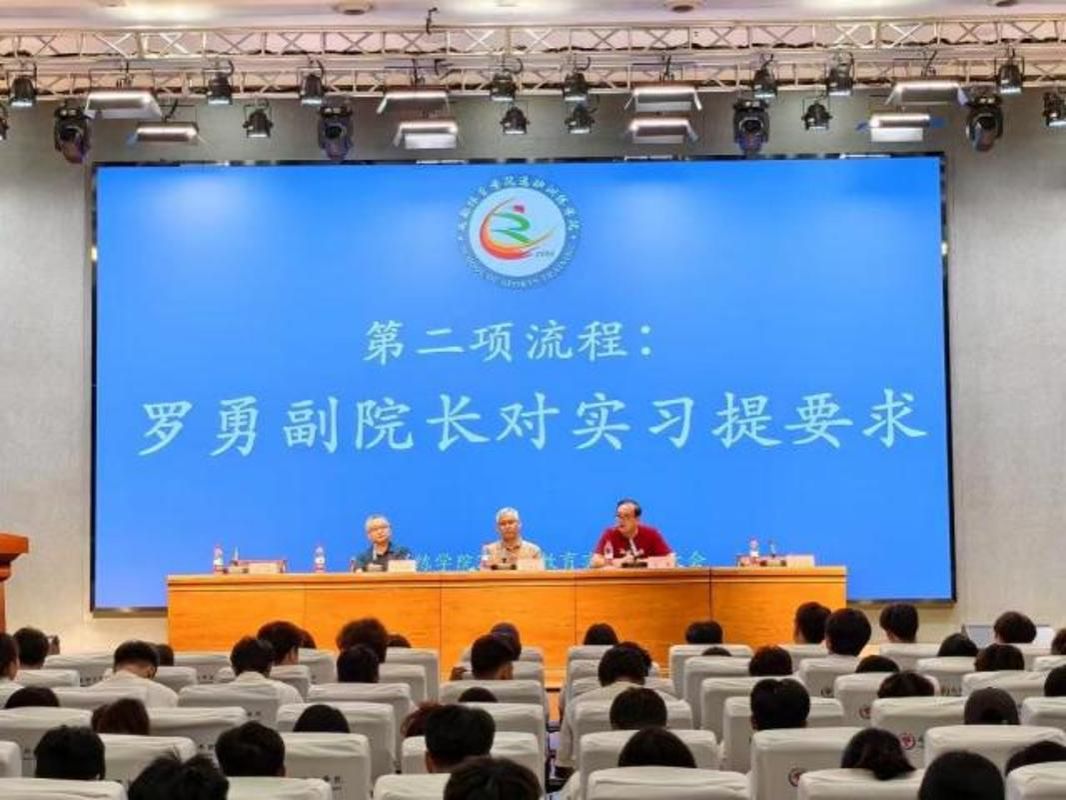 动员大会立足运动训练专业的人才培养方案,紧扣学生们职业发展,以往届实习成功就业的案例为同学们阐述了教育训练实习在人才培养中的核心意义,殷切期望学生们能珍惜实践机会、在实习岗位展现出运训人的专业风采。