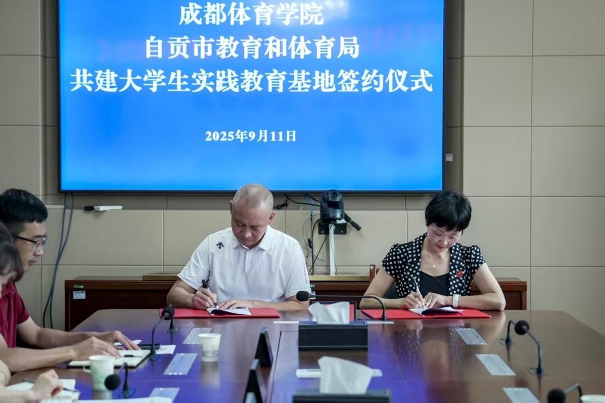 为深化校地协同,强化体育人才培养与地方发展需求的精准对接,2025年9月11日,体育教育学院与自贡市教育和体育局正式签署共建大学生实践教育基地合作协议。学院副院长李德华,自贡市教育和体育局党委书记、局长黄如贝出席签约仪式。