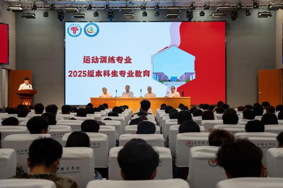 9月28日下午,运动训练学院2025级本科新生专业教育大会在学术报告厅举行。学院党委书记彭健、院长杨成波、副书记朱勇、副院长罗勇出席,各教研室主任、代表队教练、辅导员及全体新生参加。会议由本科生管理第四办公室主任凡铁龙主持。