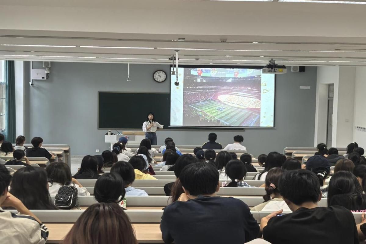 为强化2025级新生专业教育,进一步明晰“英语+体育”专业特色,9月30日上午,外国语学院运动项目教研室主任李梦楚为2025级全体新生开展专业特色教育。