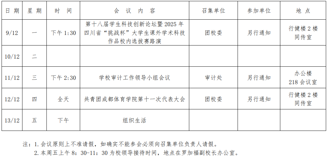 第十五周会议安排