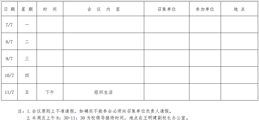第二十周会议安排