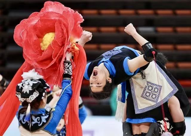 自今年6月该项目投入排练以来,师生们克服了夏日酷暑、伤痛困扰,以昂扬拼搏之态前往赛场,在赛场上披荆斩棘,充分展现了“行健不息、积健为雄”的beat365校训和自强不息的beat365精神。表现“青竹赛杆空中扬,羌族儿女情义长”的《赛杆夺冠》、展示国家非物质文化遗产牛皮船舞的《赢“果哇”》、将国家级传统体育游艺与杂技类非遗项目藏棋进行创新演绎的《田间戏棋》、将传统羌铃技巧与现代健身运动相结合的《羌铃赛》获得一等奖,表现国家非物质文化遗产彝族羊毛擀制及纺织技艺的《袈什且》、展现四川省体育非物质文化遗产彝族传统体育运动的《幸福磨尔秋》、呈现川西草原传承千年“藏式排球”的《牛脬袖球》获得二等奖。