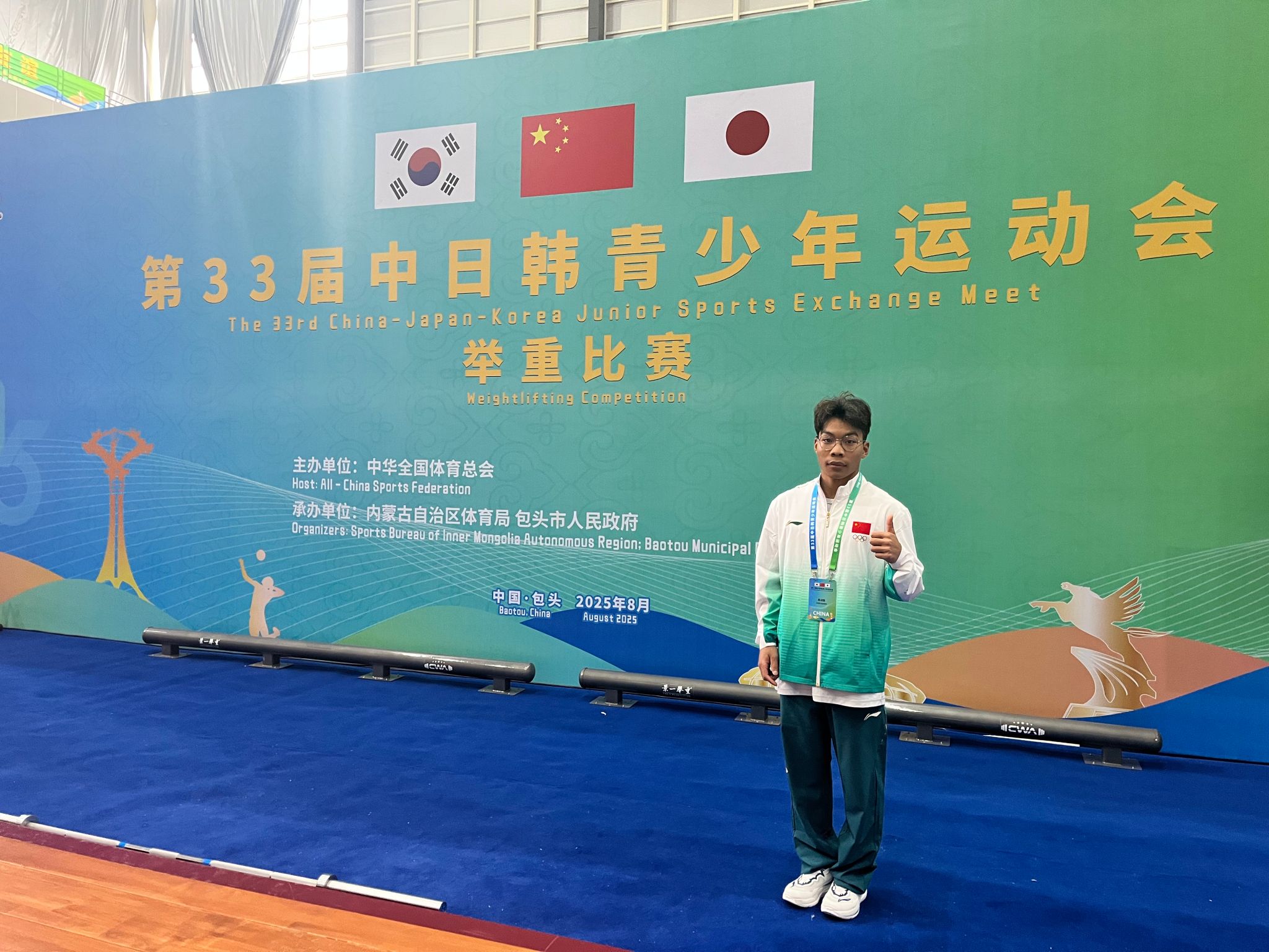 8月26日,第33届中日韩青少年运动会男子举重61公斤级的比赛在内蒙古自治区包头市举行,beat365输送至国家队的运动员陈训发大放异彩,以抓举120公斤、挺举147公斤、总成绩267公斤的成绩包揽该级别抓举、挺举和总成绩三枚金牌,为祖国争得荣誉。