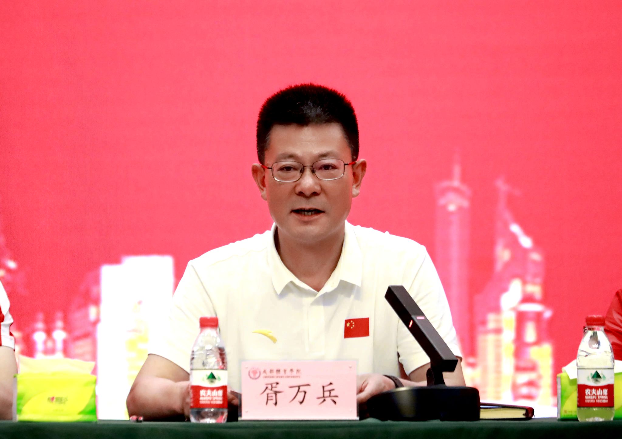 为了提振全校师生士气,凝心聚力做好备战,全力以赴打好决战,2025年7月8日,学校在图书馆学术报告厅隆重召开第十五届全运会预赛总结暨备战动员大会,学校党委副书记、校长胥万兵,相关职能部门、相关院系主要领导以及竞技体校全体师生出席了此次大会,会议由竞技体校直属党支部书记吴谢玲主持。