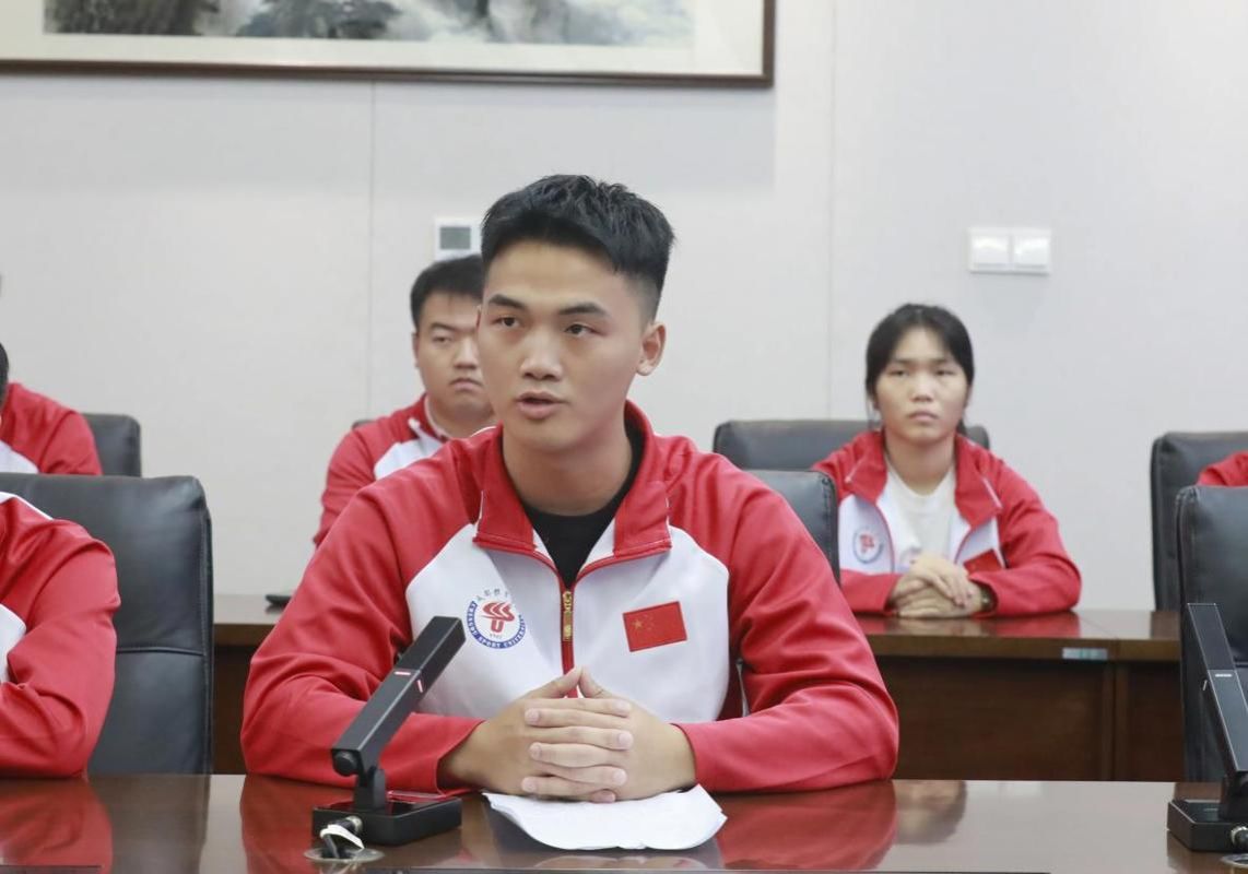 体育教育学院2022级学生贺杰作为支教学生代表发言。他对学校提供实践平台表达了由衷的感谢,并表示支教不仅是奉献,更是成长与收获。他承诺将立足体育专业特色,践行学校“立德树人根本任务”,帮助孩子们在运动中快乐成长,为乡村教育注入新活力,决不辜负国家、学校与家庭的期望。