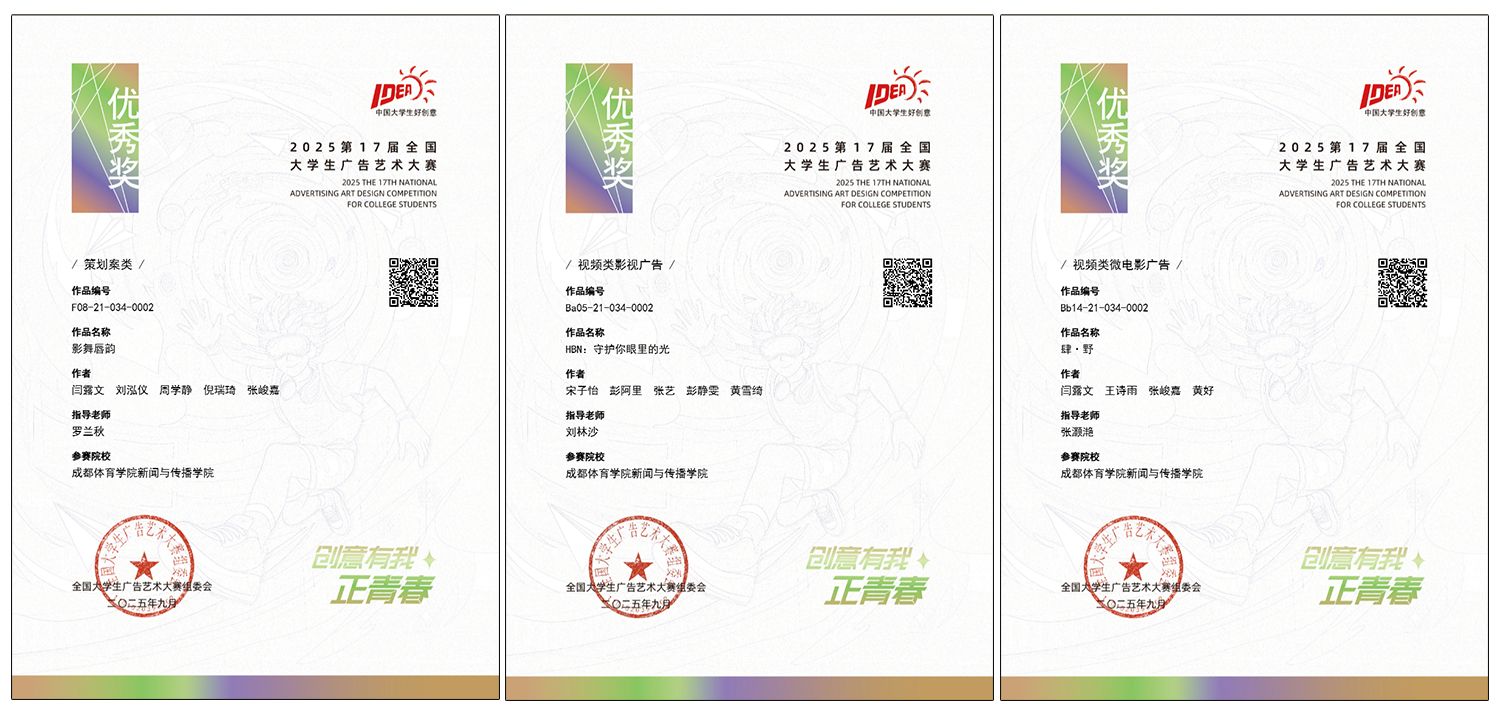 2025年第十七届全国大学生广告艺术大赛beat365唯一官方网站获得 国家级、四川省级奖项情况 |