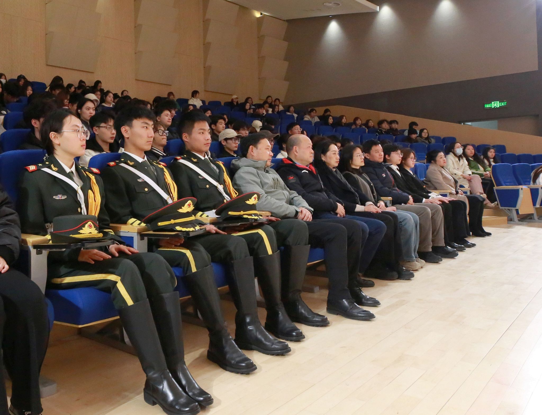 韩万斋教授以中华人民共和国国歌(以下简称国歌)为切入点,系统阐述了国歌创作的历史背景、精神内核及其时代意义。通过专业的讲解和深情的演绎,引导师生从音符中聆听历史的回响,从旋律中感悟信仰的力量。韩教授强调,国歌不仅是一个民族精神的象征,更是中华儿女团结奋进的精神图腾。他特别指出,国歌的创作过程凝聚了无数革命先烈的智慧与心血,其旋律中蕴含着中华民族不屈不挠、团结奋进的精神气节。通过现场演绎国歌的经典片段,使与会师生深刻感受到国歌所传递的爱国主义精神与民族自豪感。韩教授结合新时代背景,深入阐释了国歌精神在当代的现实意义,号召青年学子将爱国之情、强国之志转化为报国之行,在实现中华民族伟大复兴的征程中贡献青春力量。