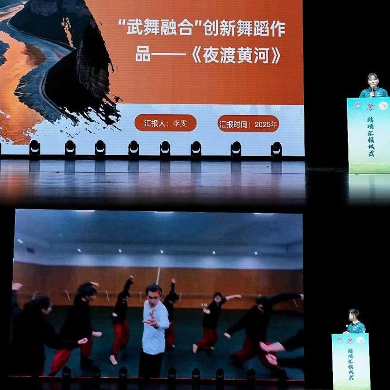 结项汇报仪式分为破茧·学术之光、织梦·创想之翼、留影·武舞绘卷等篇章,逐一进行了论文、脚本和视频汇报,形式多样、内容详实的成果汇报,充分展现了该项目的培养成效和取得的累累硕果。