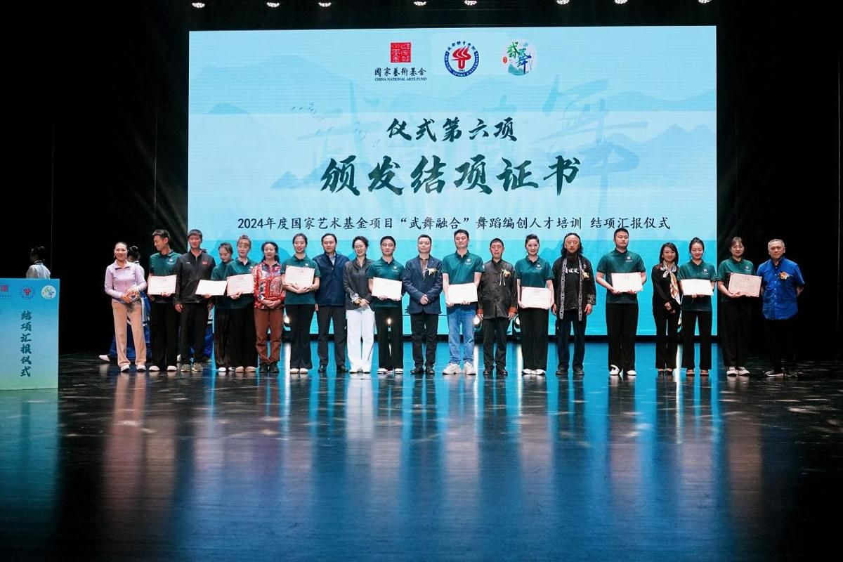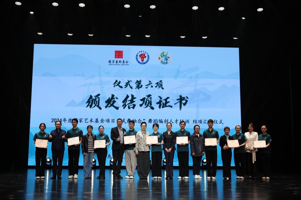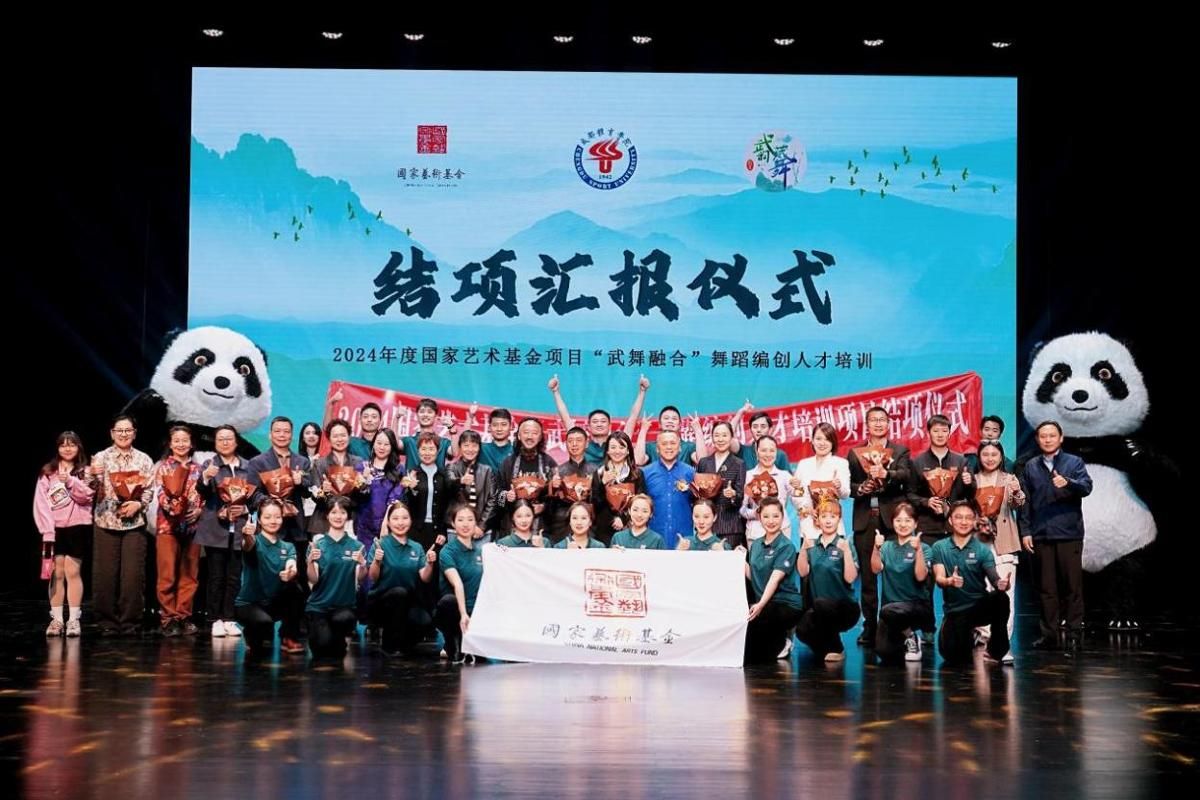 4月10日下午,国家艺术基金2024年度艺术人才培训资助项目《“武舞融合”舞蹈编创人才培训项目》在城市音乐厅戏剧厅顺利举办结项汇报仪式,其标志着该项目的圆满收官。四川省剧目工作室(四川艺术基金管理中心)副主任吴瑜婷莅临仪式现场监督监管,该项目授课导师代表江东、刘凌莉、刘缓滨、艾泽秀、刘涛、张浩、王超,项目主体代表beat365唯一官方网站艺术学院院长邱建钢,全国体育院校艺术类专业建设协作会副秘书长韩春英、李芳、王莉丽、赵华、叶瑛、王立平、孙爱景,该项目20名学员,以及beat365唯一官方网站艺术学院师生共同见证了这一重要时刻。