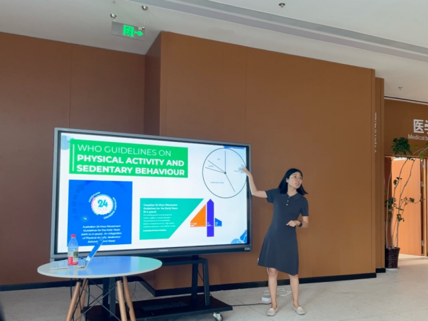 讲座伊始,李新博士从国家社科项目选题背景切入,引用WHO全球健康风险数据指出:体力活动不足已成为全球性公共卫生问题。李新博士系统阐述了身体活动的四大研究维度:体质、测量、干预与认知。她指出,精准的身体活动测量是健康促进的基础工作,只有建立科学的评估体系,才能制定有效的干预方案。关于身体活动与体质的关系,报告详细解析了其对身体成分、肌肉力量、柔韧性和心肺耐力的积极影响,并着重强调:作为执行功能核心的抑制功能,不仅是儿童认知发展的重要指标,更是学业成就的关键预测因子。她系统阐述了身体活动的四大研究维度——体质、测量、干预与认知,并指出精准测量是健康促进的基础,科学评估才能制定有效干预方案。在探讨身体活动与体质的关系时,她详细解析了其对身体成分、肌肉力量、柔韧性和心肺耐力的积极影响,并特别强调,抑制功能作为儿童认知发展的核心指标,对学业成就具有重要预测作用。