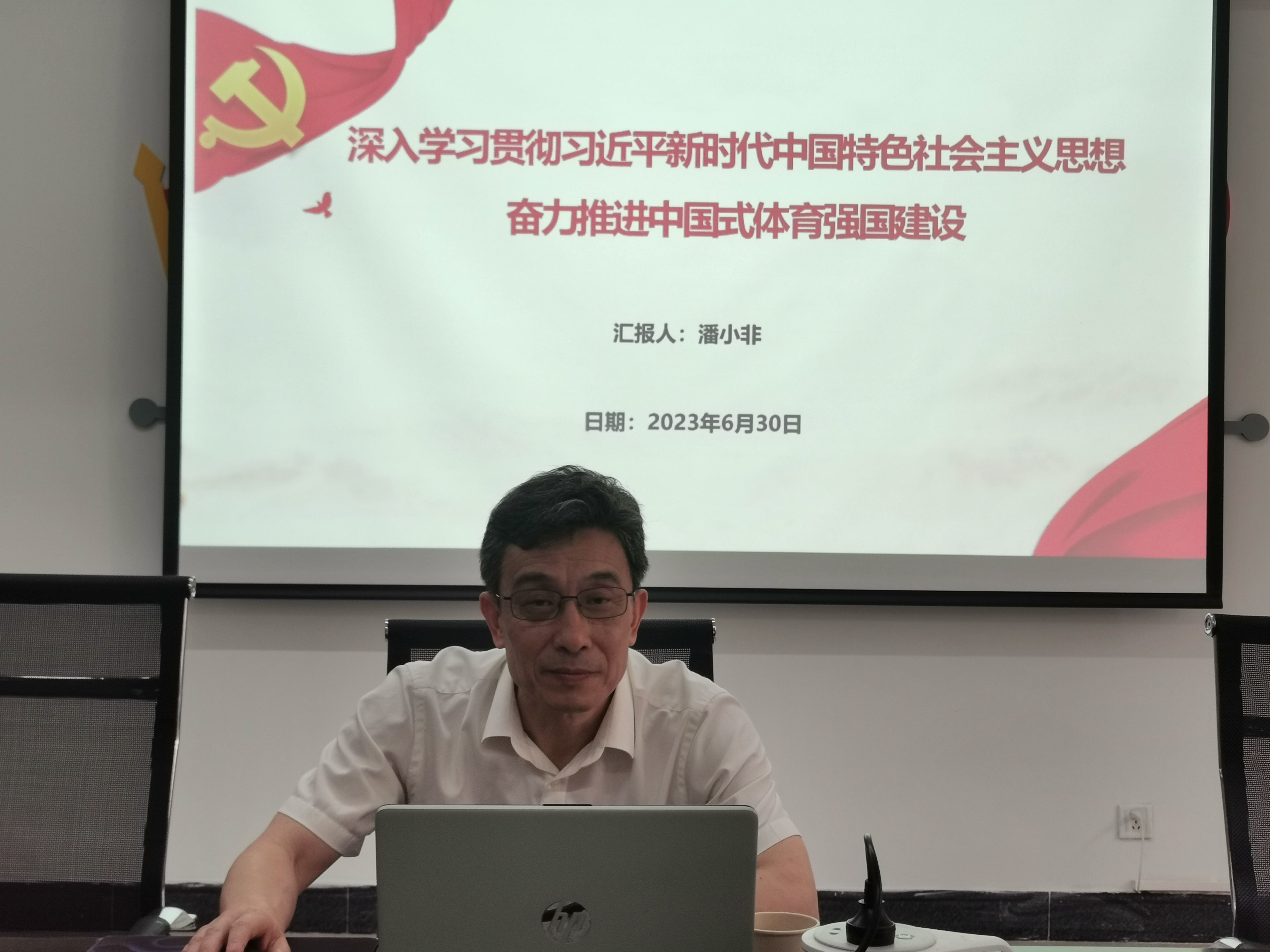 6月30日下午,学校党委副书记、校长潘小非在竞技体校二楼会议室以《深入学习贯彻习近平新时代中国特色社会主义思想奋力推进中国式体育强国建设》为主题,为竞技体校全体教职工,分管部门发展规划处、审计处、国际合作与交流处相关同志讲授学习贯彻习近平新时代中国特色社会主义思想主题教育专题党课。