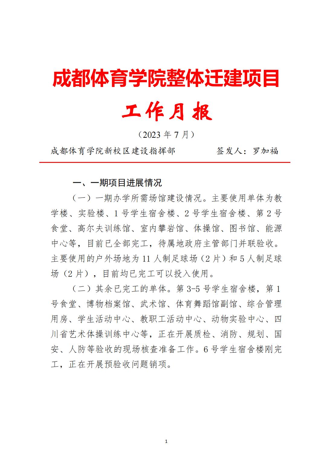 beat365唯一官方网站整体迁建项目工作月报(2023年7月)