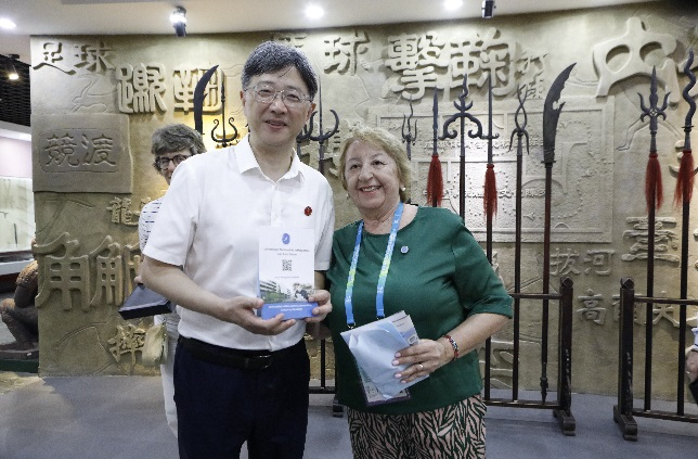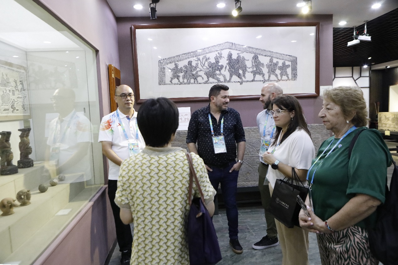 潘小非校长向代表团简单介绍了学校的办学历史、学科发展、专业特色以及服务本届大运会等基本情况,并就beat365与阿根廷合作事宜与代表团进行交流,并陪同代表团参观学校体育史博物馆。