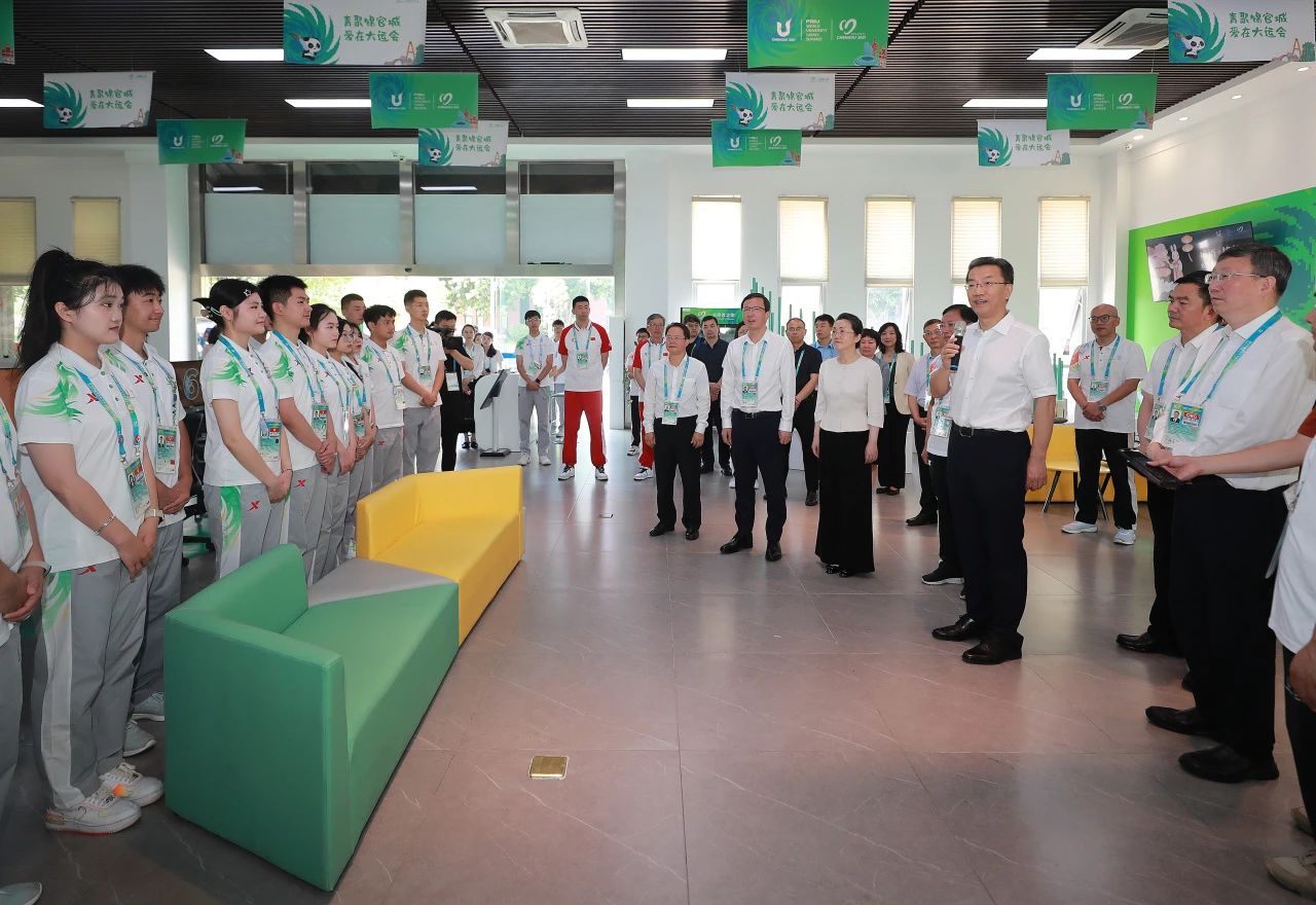 8月8日,教育部党组书记、部长、成都大运会组委会主席怀进鹏赴成都大运会大运村,慰问中国大学生体育代表团、大学生志愿者。教育部党组成员、副部长、成都大运会组委会副主席王嘉毅、陈杰,四川省副省长、成都大运会组委会副主席郑备参加慰问。