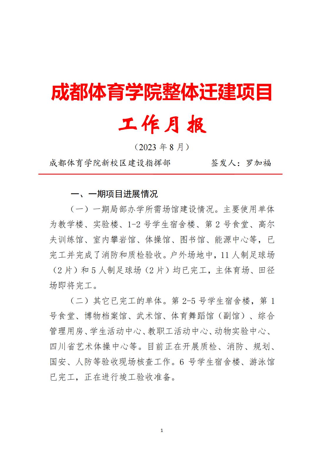 beat365唯一官方网站整体迁建项目工作月报(2023年8月)