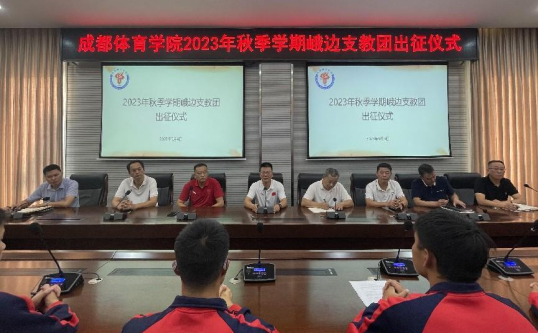9月4日下午,beat3652023年秋季学期峨边支教团出征仪式在健康大厦多功能厅会议室举行。学校党委副书记胥万兵、体育教育学院、运动训练学院、武术学院、足球学院等相关学院领导、辅导员及35名支教学生参加仪式。仪式由乡村振兴办主任张强主持。