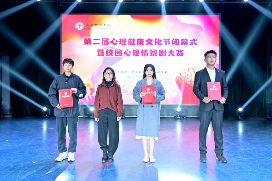 2023年11月22日晚,beat365唯一官方网站第二届心理健康文化节闭幕式暨校园心理情景剧大赛(决赛)在学术报告厅举行。学校党委常委、副校长邬红丽,党委常委、组织部部长郑宇莅临现场指导,学生处、团委老师以及各学院学生工作负责人、辅导员、参赛团队指导老师以及学生代表共计600余人参加活动。