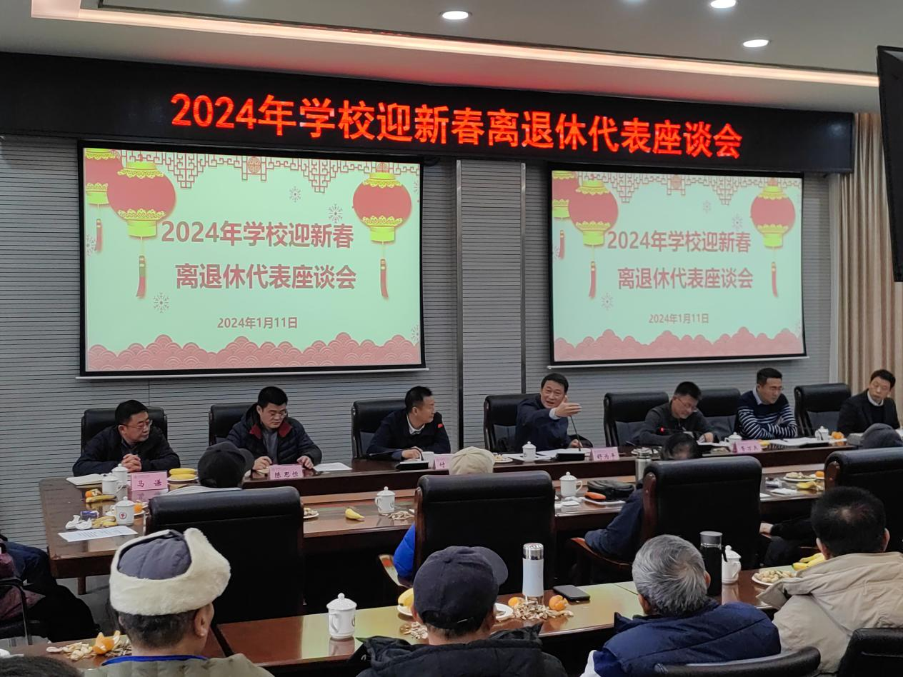 辰龙贺岁,华夏升腾。1月11日上午,学校在健康大厦多功能厅召开了2024年迎新春离退休代表座谈会。会议上,学校党委书记舒为平、党委副书记胥万兵、党委常委副校长付东、党委常委组织部部长郑宇以及相关部门的负责同志与离退休教职工代表们欢聚一堂,叙情谊,谋发展,共迎新春佳节。会议由党委副书记胥万兵主持。
