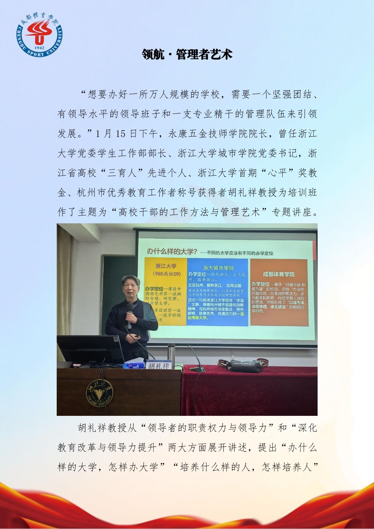 学校行政管理人员综合素质能力提升培训班学习简报(第一期)