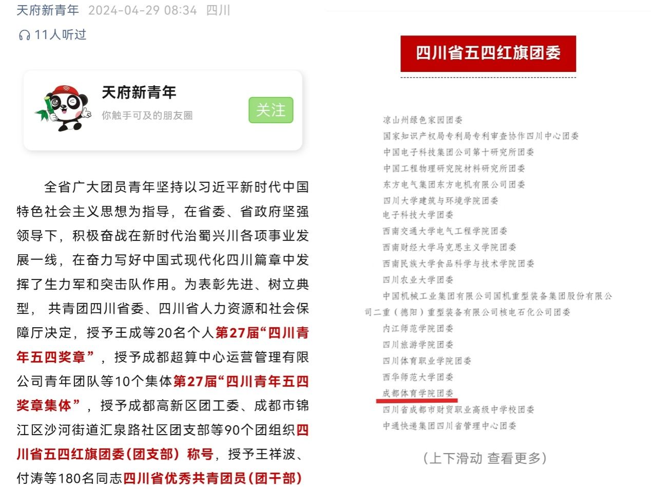 获评“四川省五四红旗团委”称号,是对多年以来beat365共青团工作的充分肯定,是对beat365各级团组织及广大团员青年的激励与鼓舞。beat365共青团将持续聚焦立德树人根本任务,全面推动共青团改革,不断开拓创新、真抓实干,笃行奋进,引领凝聚青年、组织动员青年、联系服务青年,为学校高质量发展和青年成长成才贡献力量。