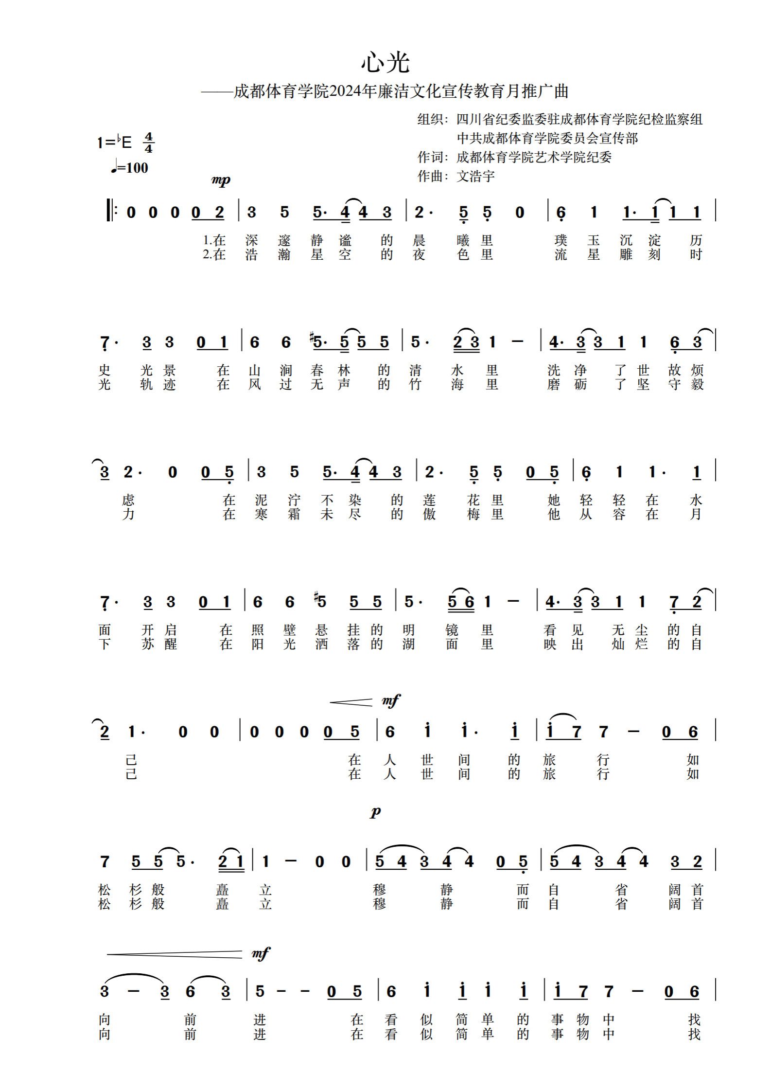 beat365唯一官方网站2024年廉洁⽂化宣传教育⽉推⼴曲《心光》