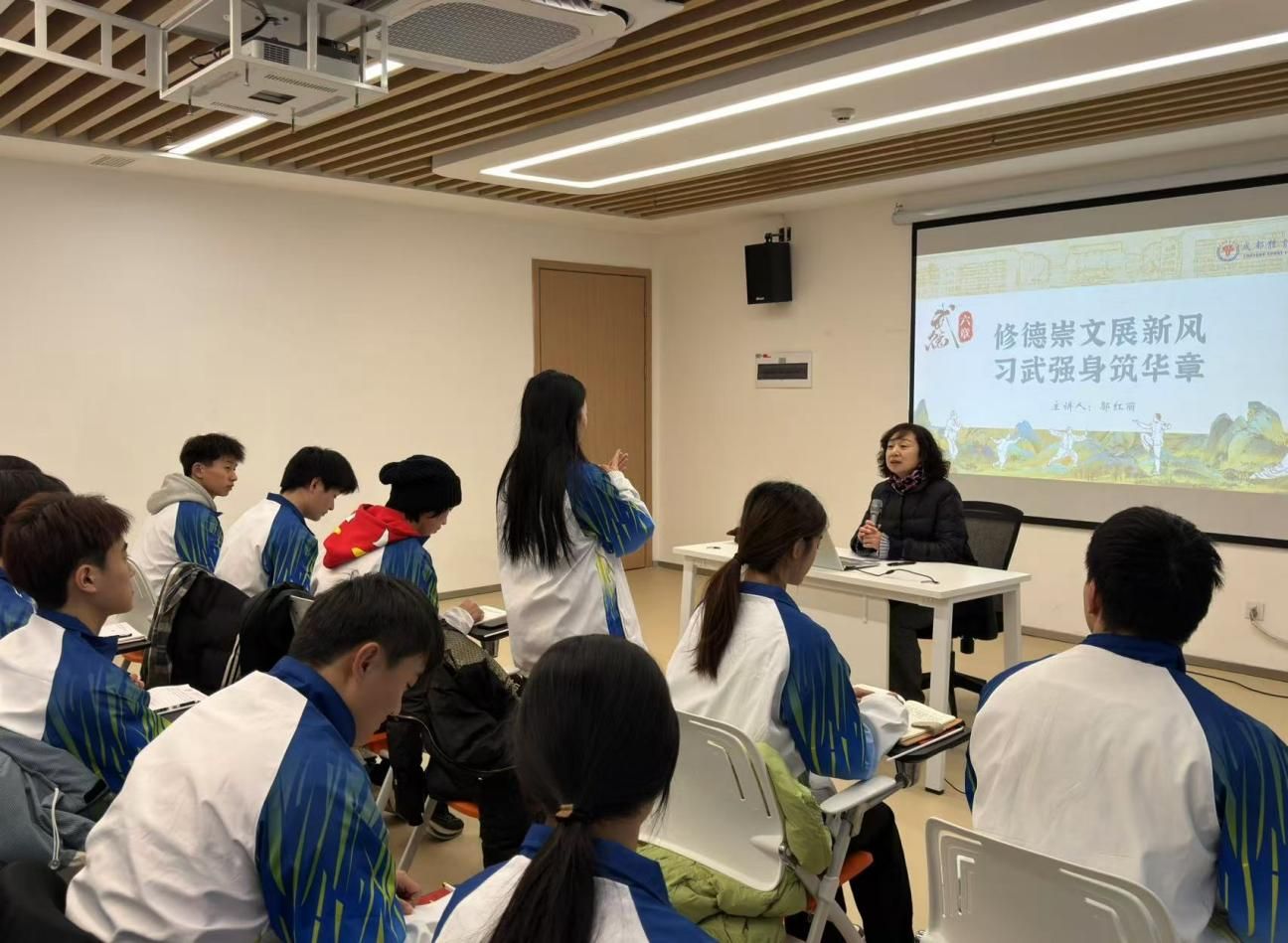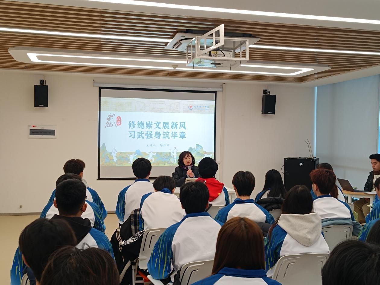 为深入学习贯彻习近平总书记关于思政课建设的重要指示精神,持续提升思政课教学的针对性和吸引力,2025年3月7日,学校党委常委、副校长邬红丽在学生活动中心三楼以“修德崇文展新风,习武强身筑华章”为主题,为武术学院2023级同学们上了一堂精彩的思政课。
