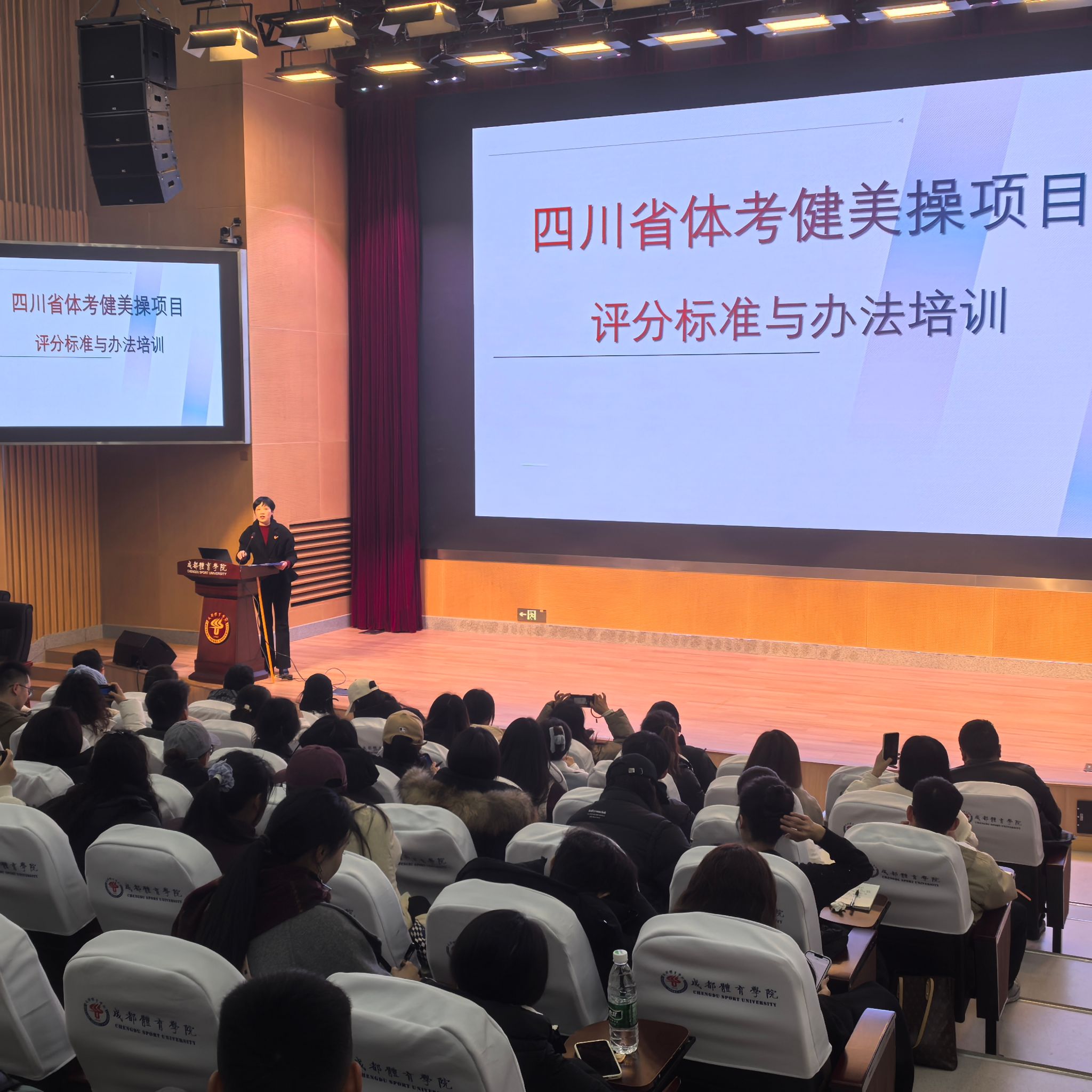 为协助相关中学更好地理解并精确掌握四川省普通高等学校招生体育类专业统考(以下简称体考)中健美操项目的评分标准与办法,经四川省教育考试院批准,在各市(州)招办的大力支持下,体考考务办联合体育教育学院于2024年12月27日下午在beat365唯一官方网站开展健美操项目评分标准与办法培训。此次培训共有来自全省16个市(州)200余名体育教师参加。
