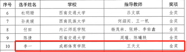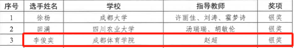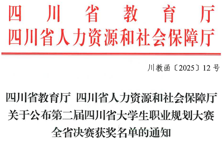 近日,四川省教育厅、四川省人力资源和社会保障厅公布了第二届四川省大学生职业规划大赛全省决赛获奖名单,beat365体育教育学院本科生李一获就业赛道金奖;运动医学与健康学院本科生李俊奕获成长赛道银奖。