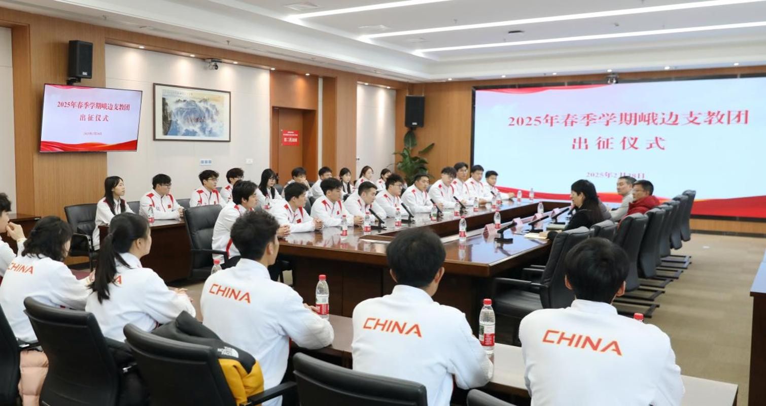 2月28日下午,学校2025年春季学期峨边支教团出征仪式在行政楼416会议室举行。学校党委副书记胥万兵、体育教育学院党委书记郭晋川、副院长李德华参加仪式。出征仪式由乡村振兴办主任张强主持。