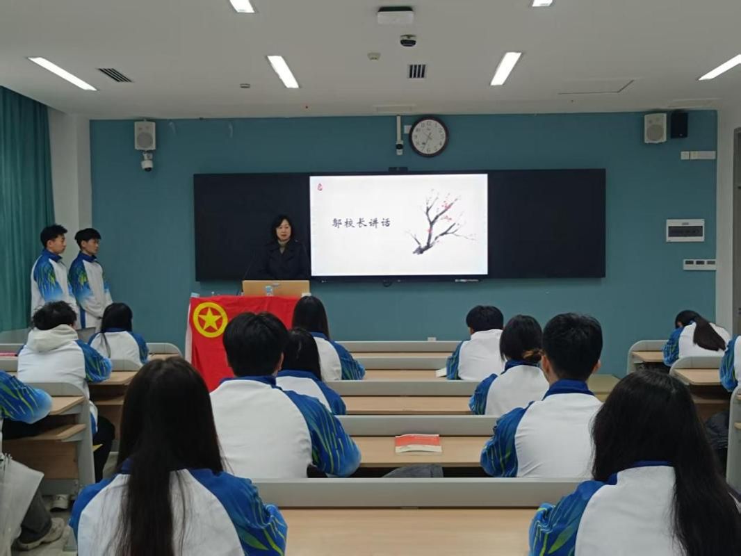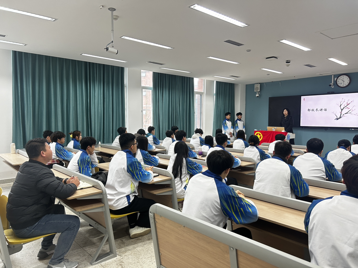 班会上,邬红丽副校长通过“思政微课”与学生作了深入交流。她强调,文明校园建设是培根铸魂的系统工程,要通过“三个转化”实现育人目标:将文明规范转化为价值认同,将行为约束转化为文化自觉,将校园公约转化为成长基因。她勉励武术学子践行“三重身份”:做传统文化的传承者,以武术精神涵养文明气质;做时代新人的示范者,用专业素养服务社会;做文明校园的守护者,让文明之花绽放在每个学习生活场景。