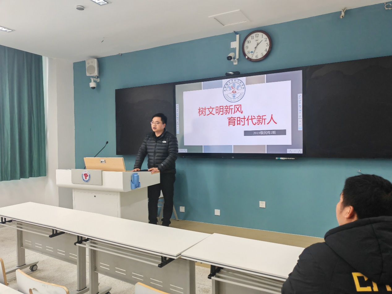 党委保卫工作部副部长刘劲松参加2022级民传1班主题班会
