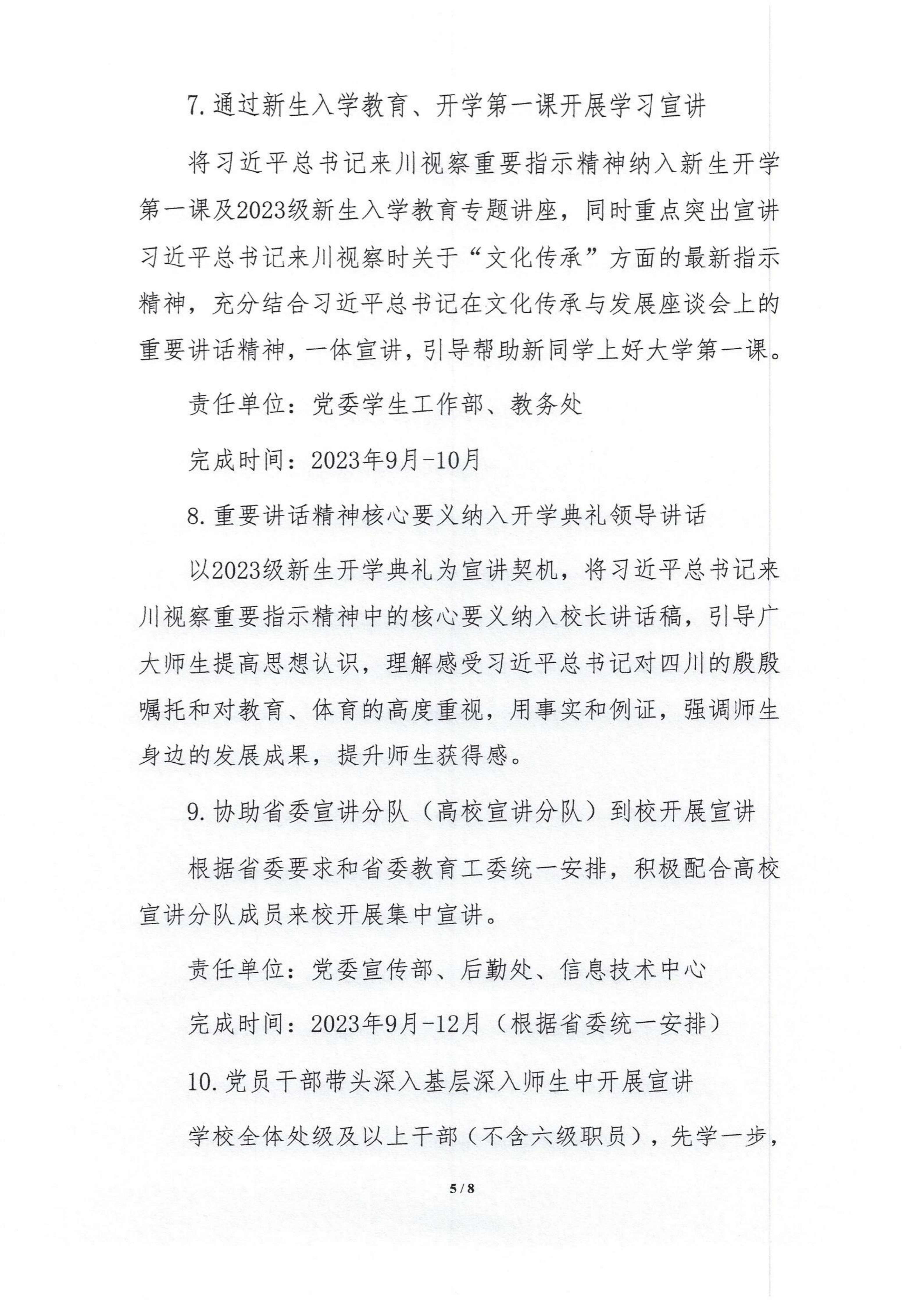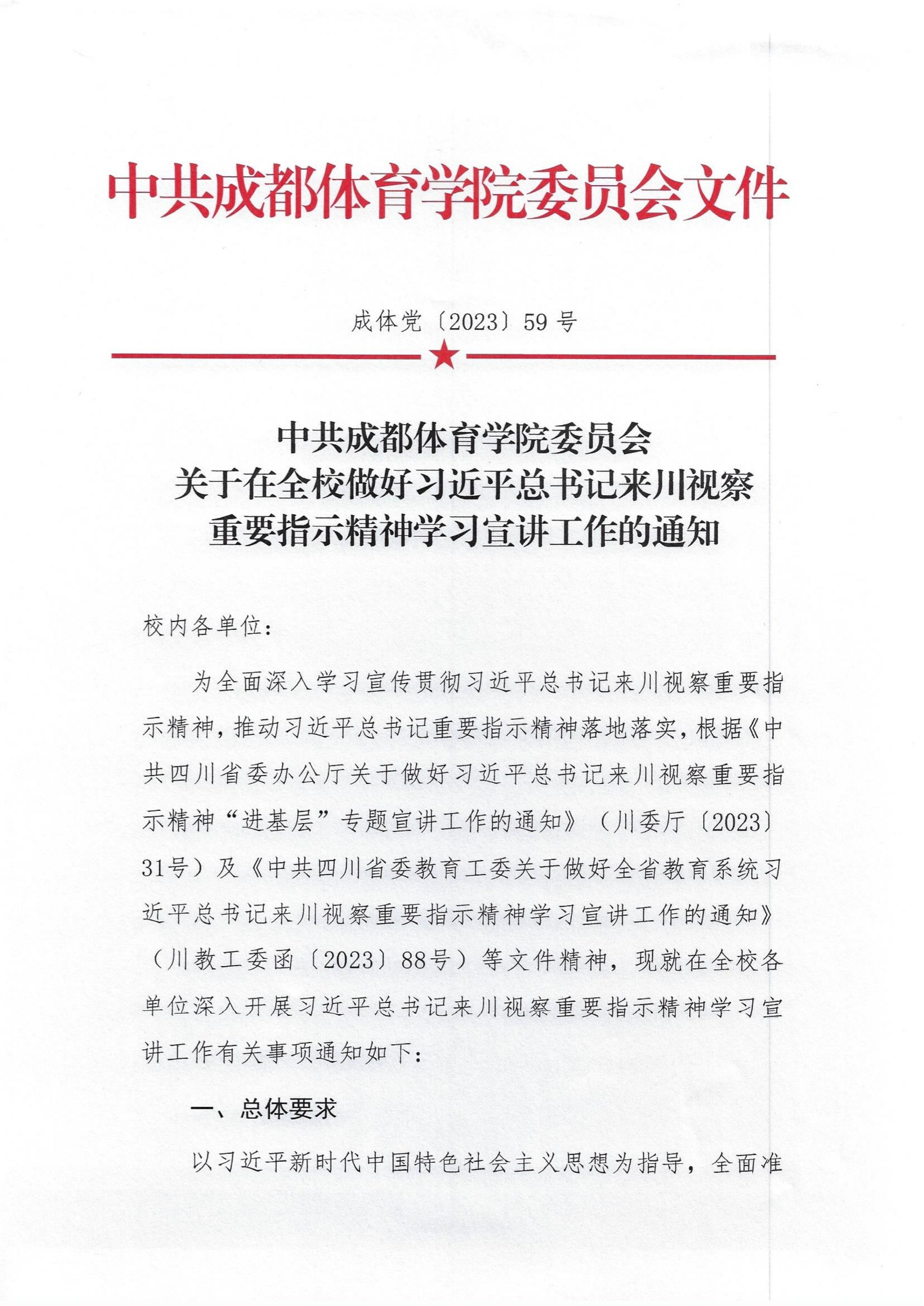 中共beat365唯一官方网站委员会关于在全校做好习近平总书记来川视察重要指示精神学习宣讲工作的通知