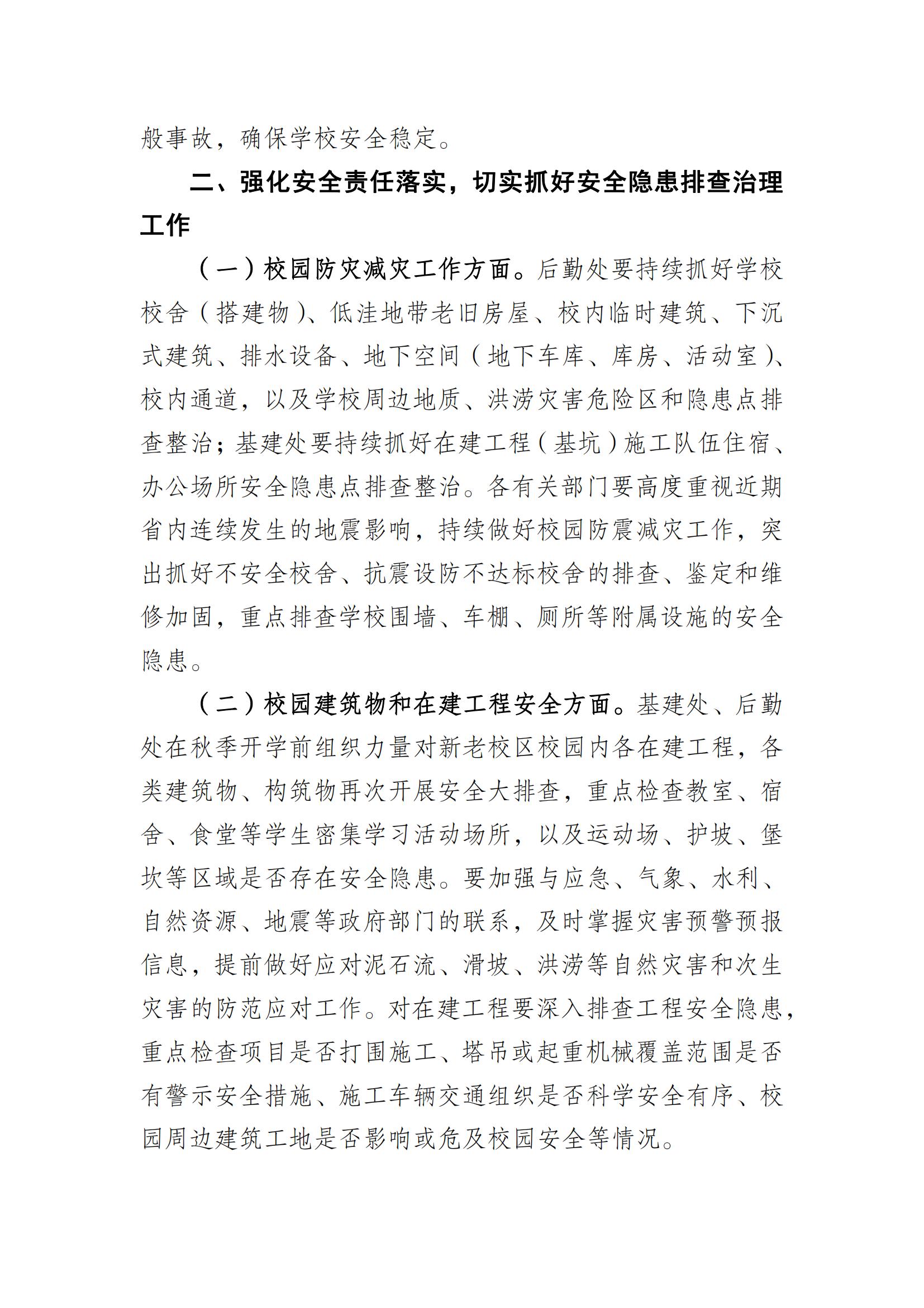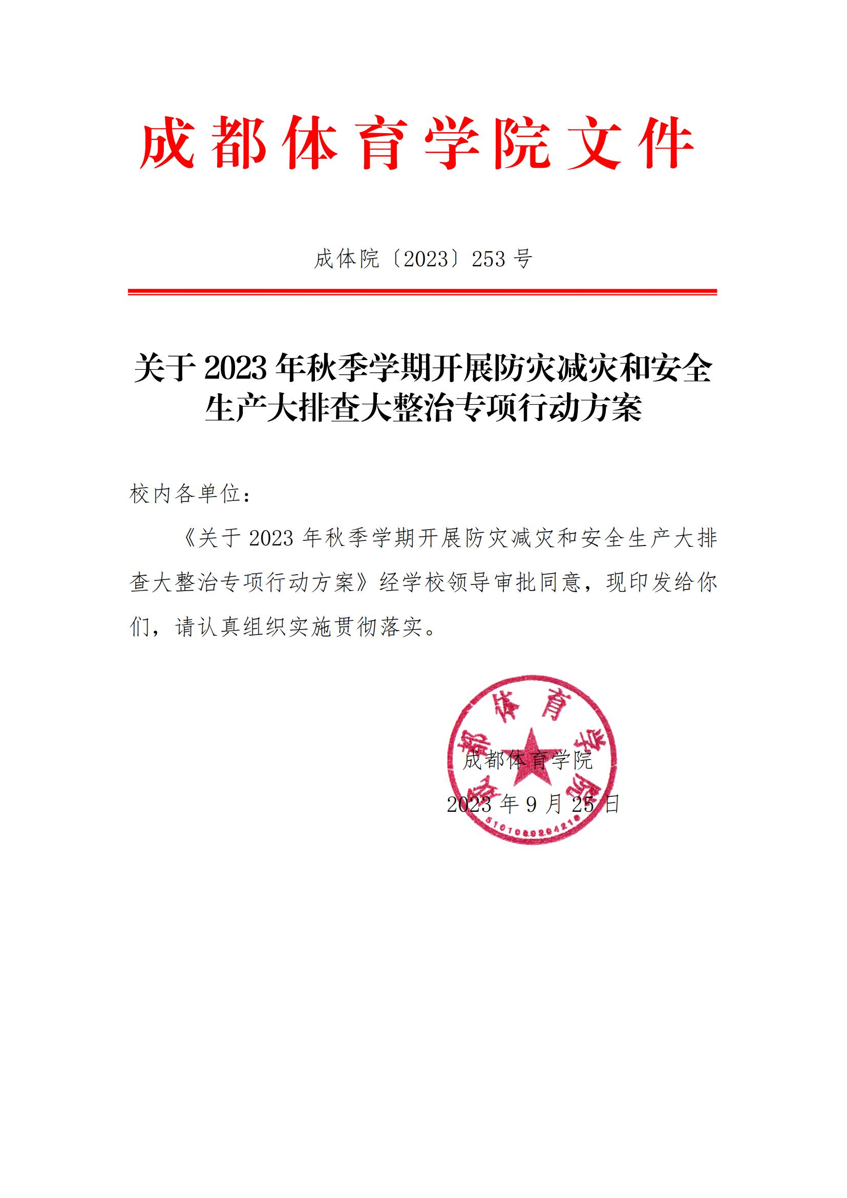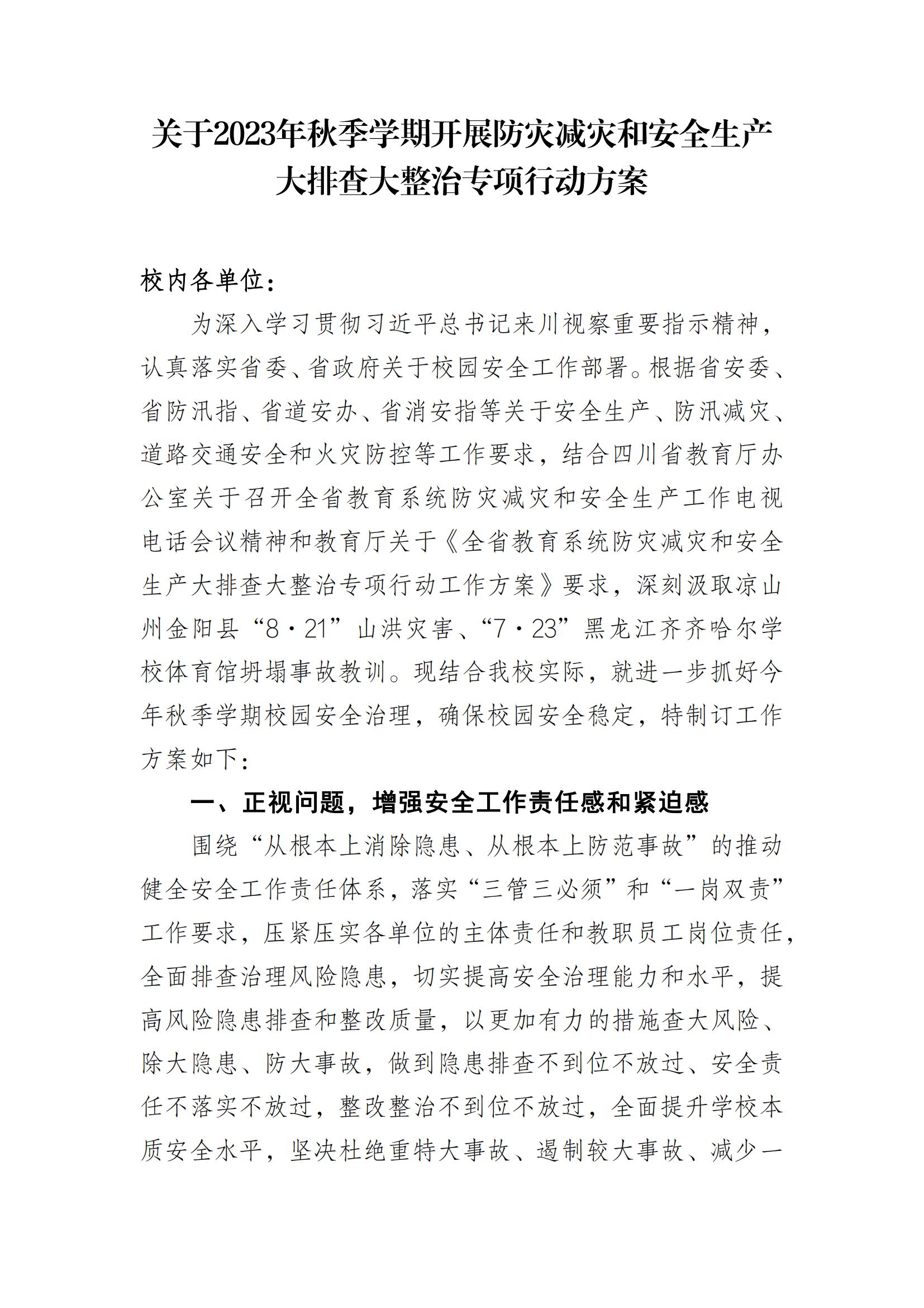 关于2023年秋季学期开展防灾减灾和安全生产大排查大整治专项行动方案