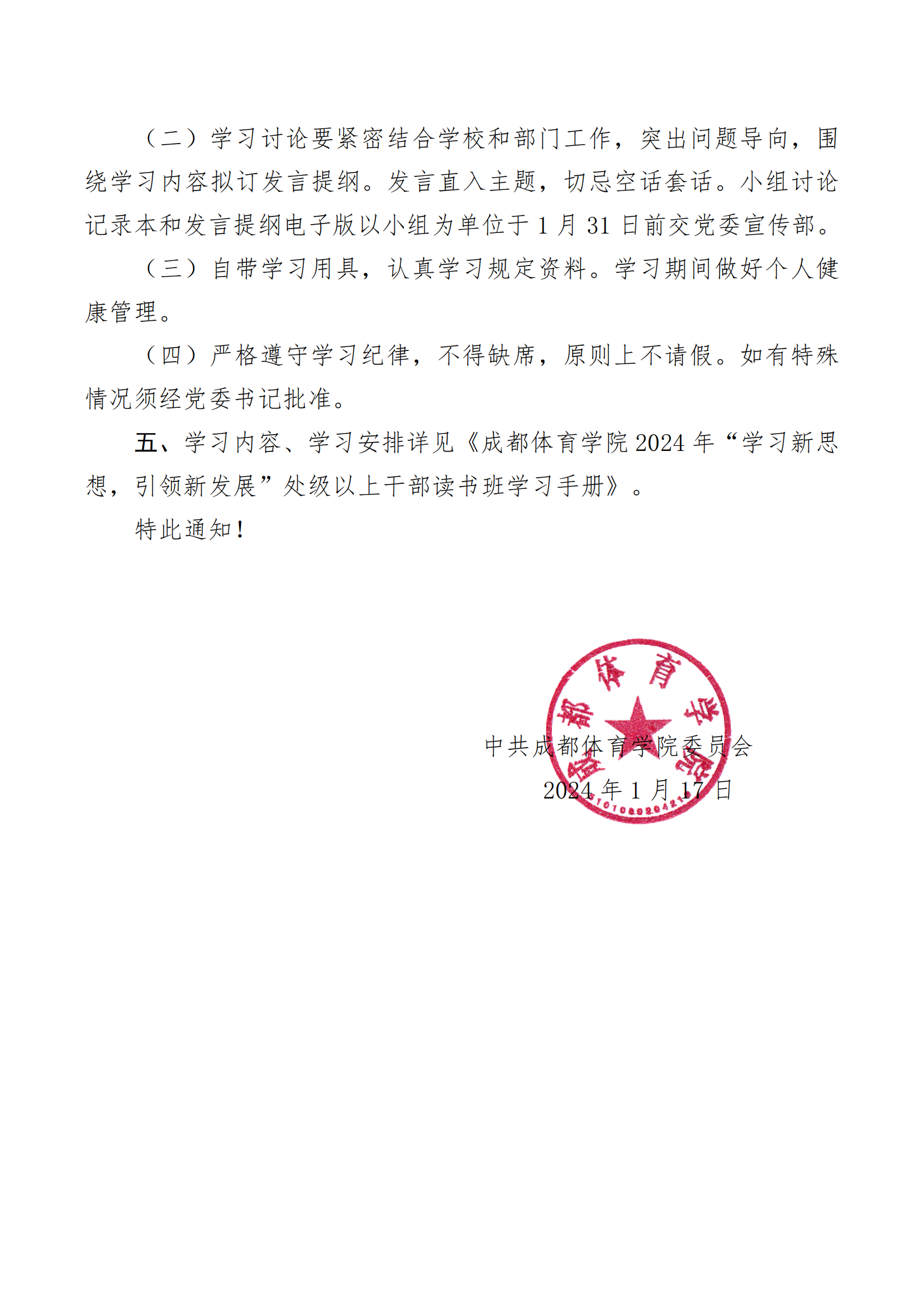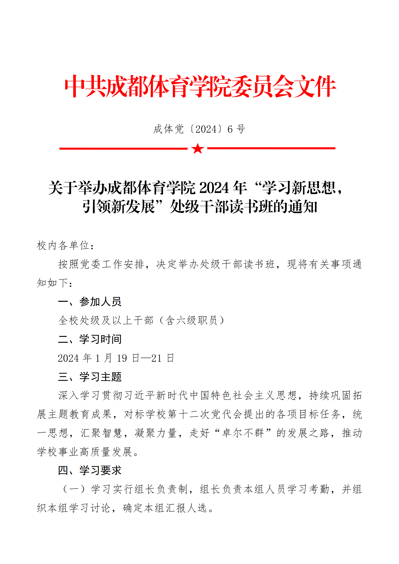 关于举办beat365唯一官方网站2024年“学习新思想,引领新发展”处级干部读书班的通知