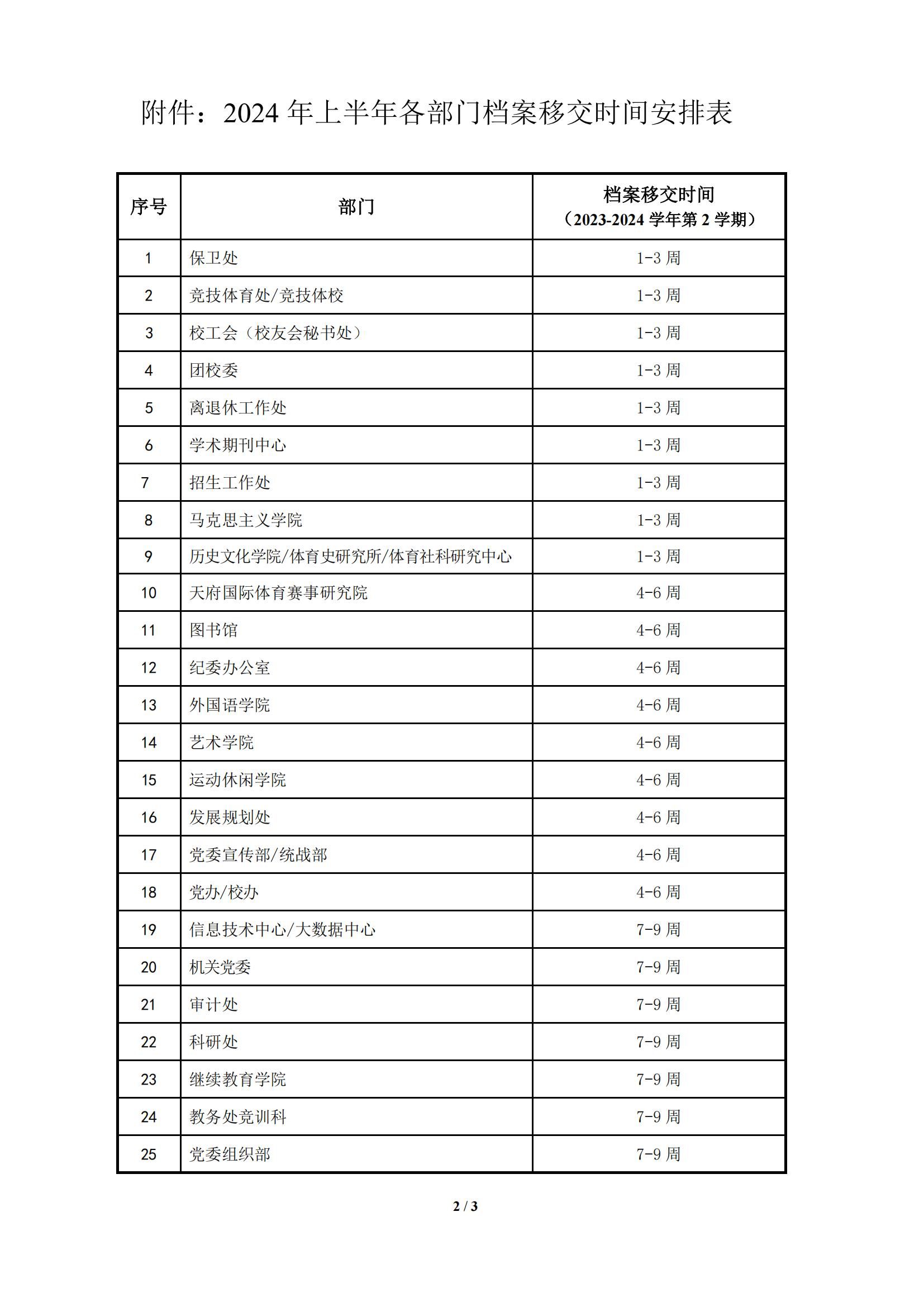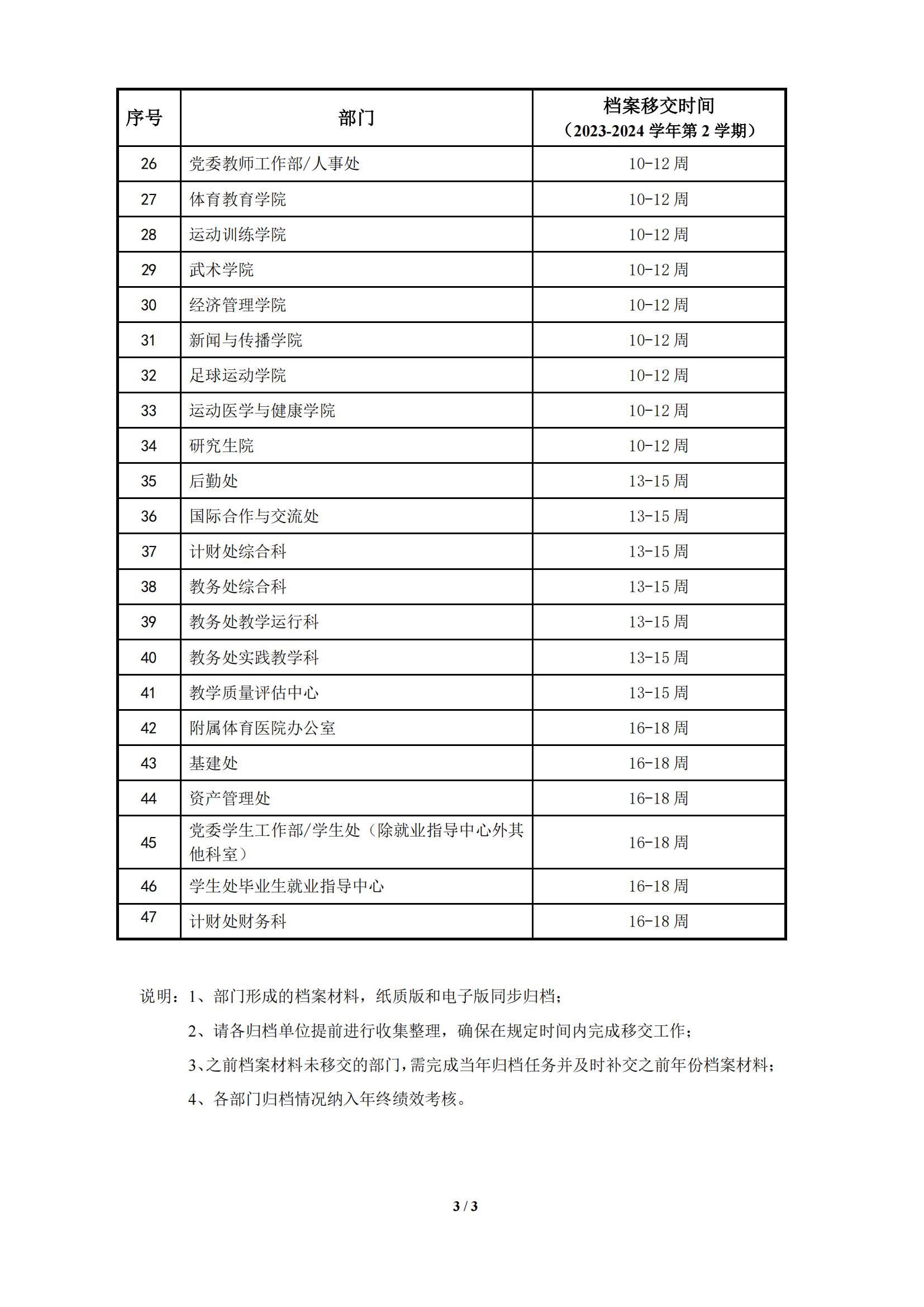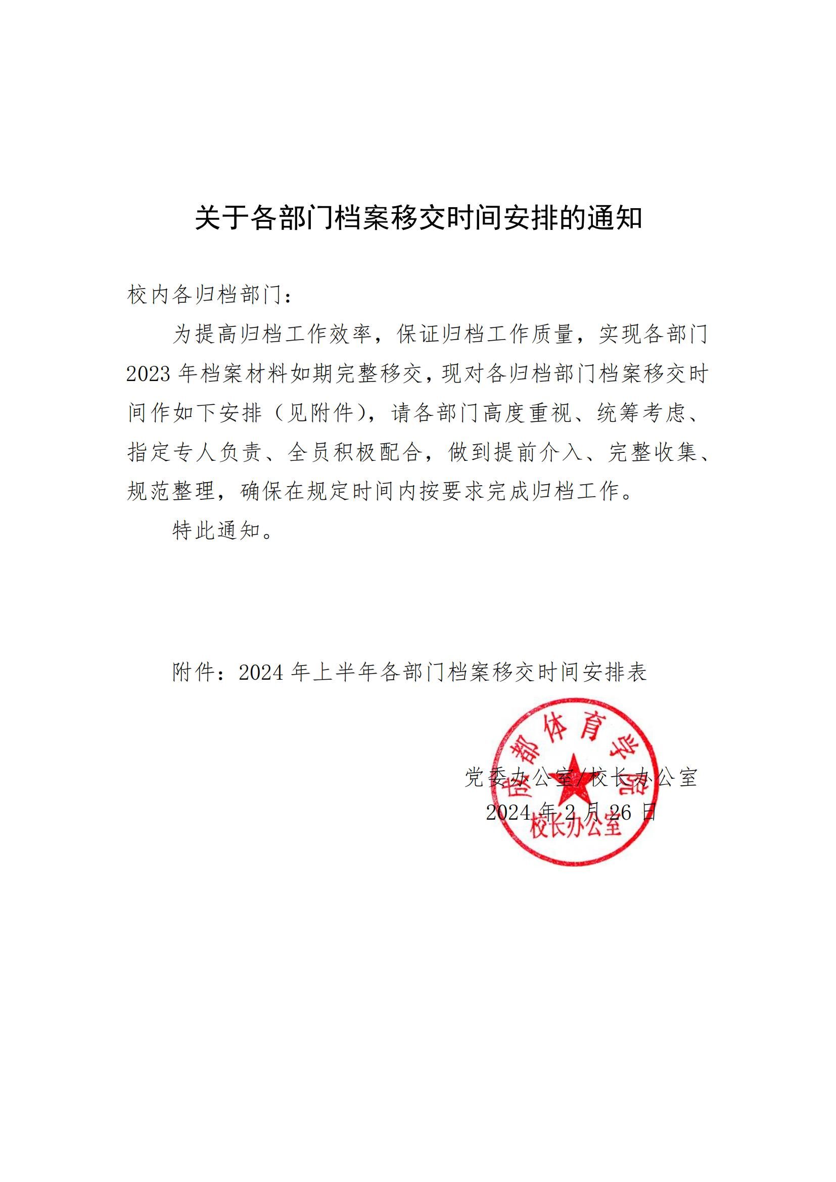 关于各部门档案移交时间安排的通知