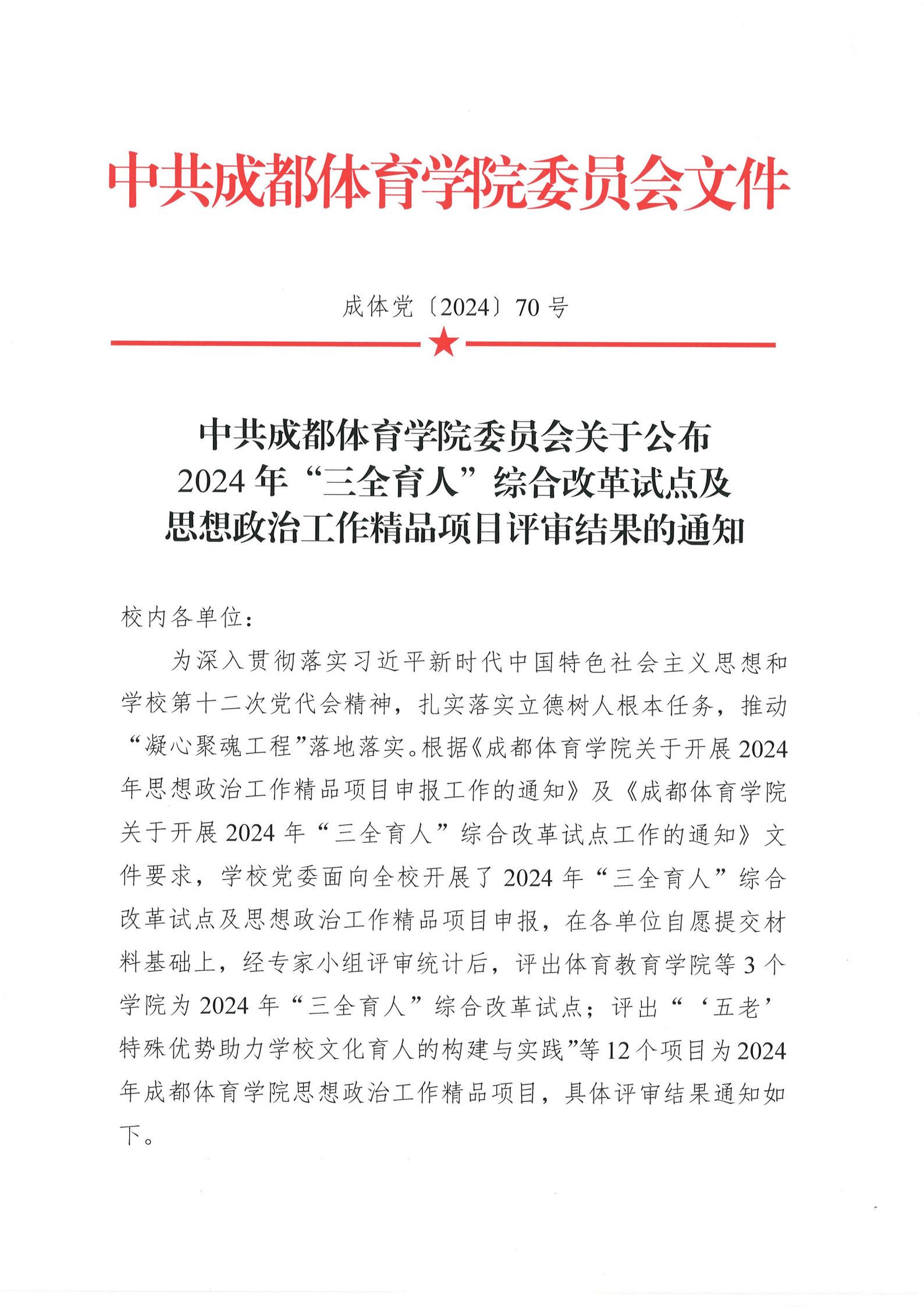 中共beat365唯一官方网站委员会关于公布2024年“三全育人”综合改革试点及思想政治工作精品项目评审结果的通知