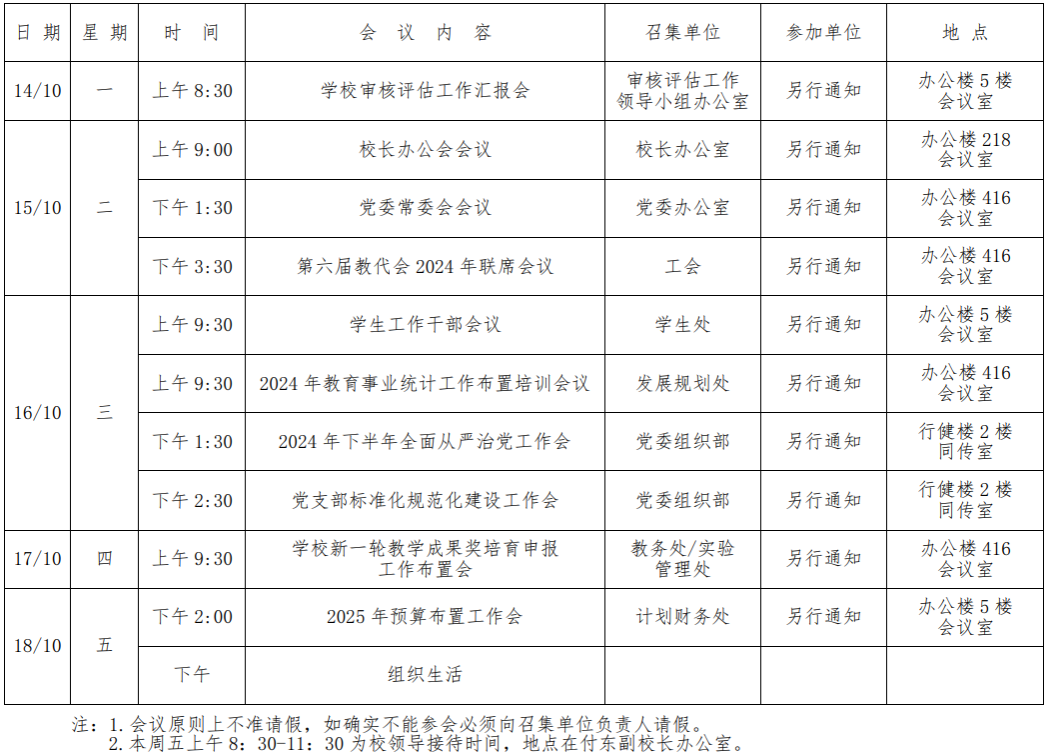第五周会议安排