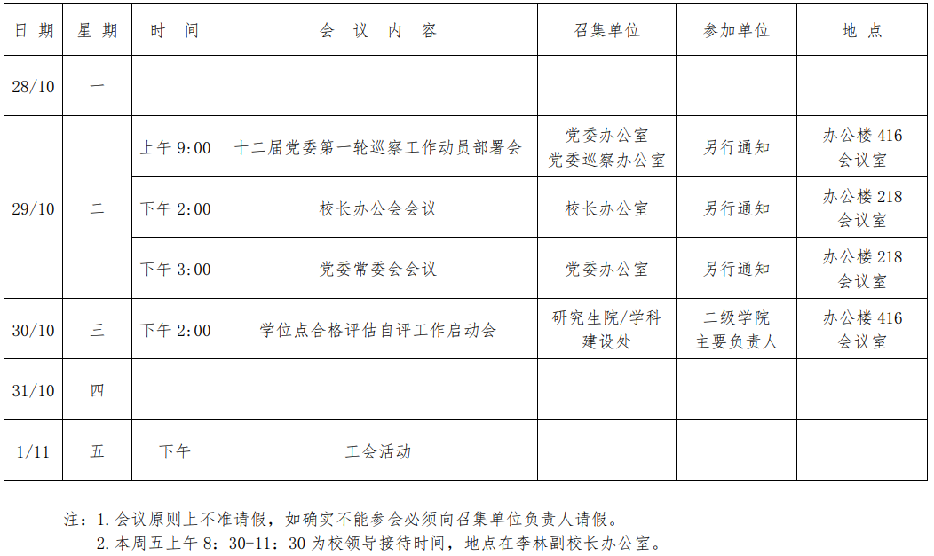第五周会议安排