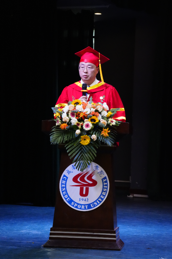 运动医学与健康学院院长胡毓诗教授致辞。胡毓诗教授代表学院师生员工对全体毕业生给予了诚挚的祝福,并提出了殷切的希望。胡毓诗教授从beat365运医人的“底气”入手,强调:希望同学们能够心系苍生,心怀梦想,脚踏实地,追求卓越;希望同学们能够心存坚守,心有感恩,忠于使命,勇于担当;希望同学们能够行健不息,豁达开朗,热爱生活,宽容自信。