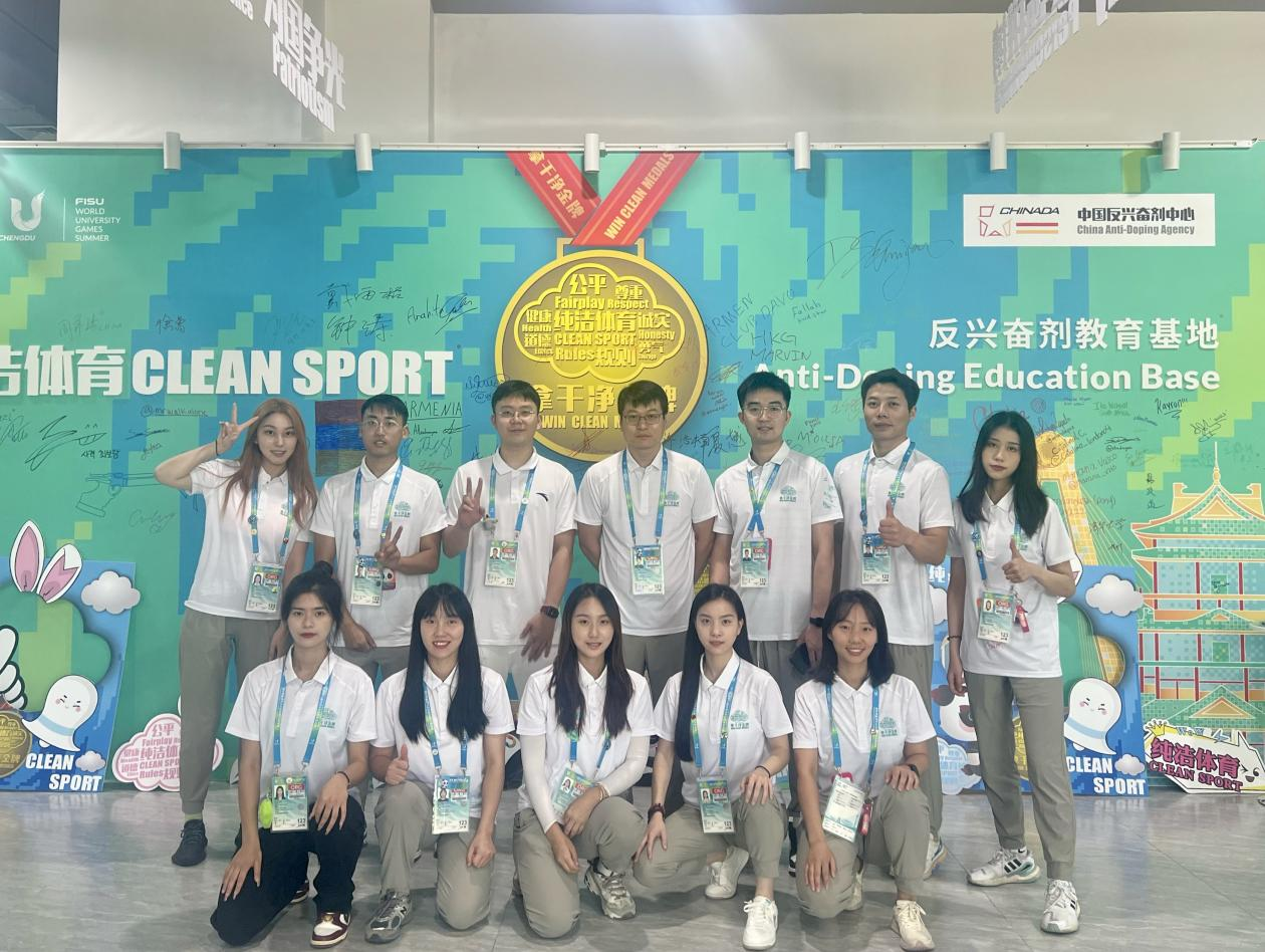 7月24日-8月8日,武术学院11名师生在学院马秀杰教授的带领下入驻大运村,以志愿者的身份担任此次世界大学生运动会的反兴奋剂宣传教育专员。