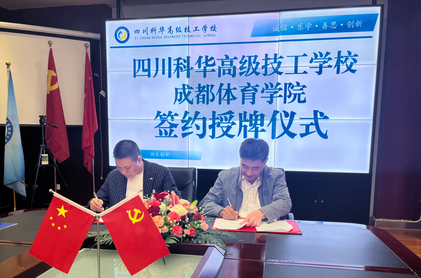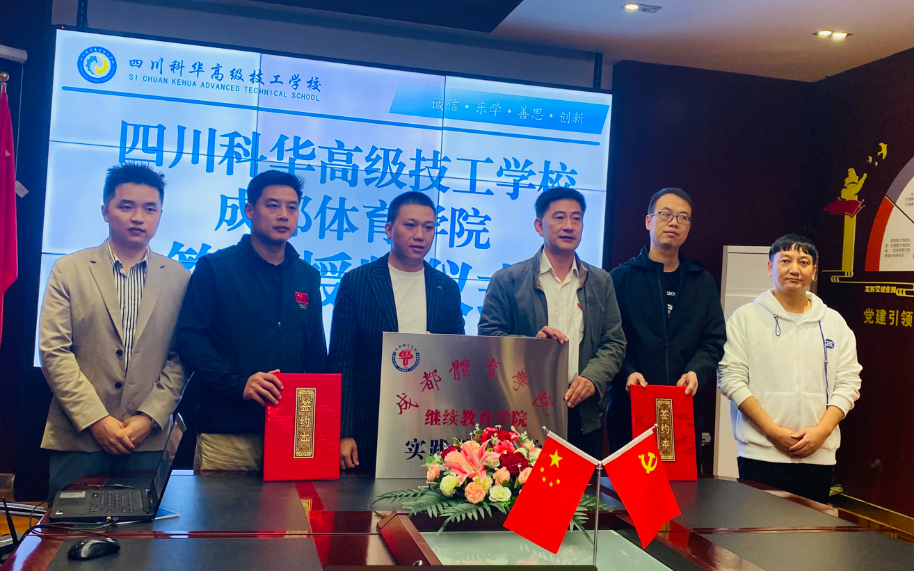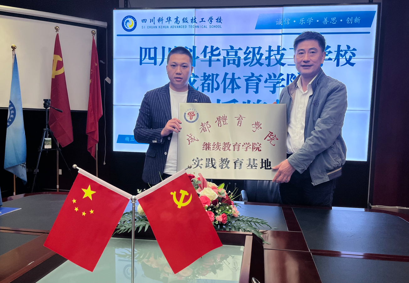 为进一步加强院校合作,深入探索体育人才培养模式,促进学校共同发展,搭建友好互通的交流平台。10月18日下午,继续教育学院直属党支部书记杨冰同志一行赴四川科华高级技工学校进行“实践教育基地”签约授牌仪式。该校副理事长张建飞、副校长李科等校负责人参加了活动。