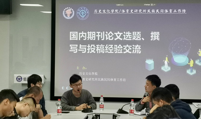 2023年10月30日上午,由历史文化学院/体育史研究所民族民间体育研究中心、研究生管理办公室和四川省哲学社会科学重点研究基地—体育社会科学研究中心联合开展的“学术沙龙”在行健楼420顺利举办,此次活动以“国内期刊论文选题、撰写与投稿经验交流”为主题,特邀华东师范大学体育学院的张震博士、副教授参与交流,由民族民间体育研究中心王洪珅教授主持,历史文化学院副院长、体育史研究所副所长宋秀平教授莅临现场并讲话。