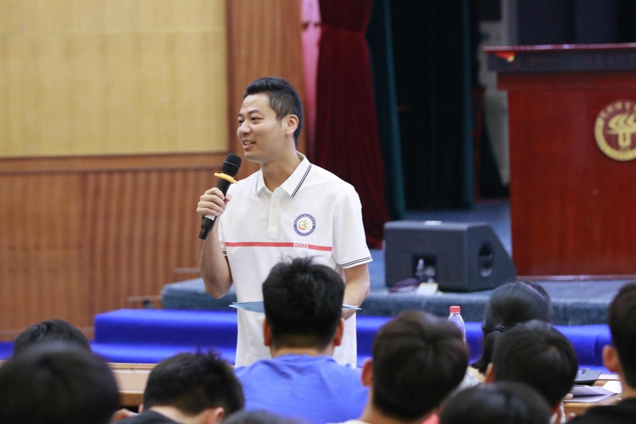 2024年6月25日晚7点,运动训练学院在学术报告厅举行2021级本科生“三尺讲台展教艺 竞训场上现风采”说课比赛。本次比赛邀请学校体育与体育理论教研室胡慧芳、运动训练学院乒羽教研室周弈、运动训练教研室王杨三位老师担任评委,运动训练学院党委副书记朱勇、副院长罗勇以及2021级全体辅导员、班主任、本科生参加。