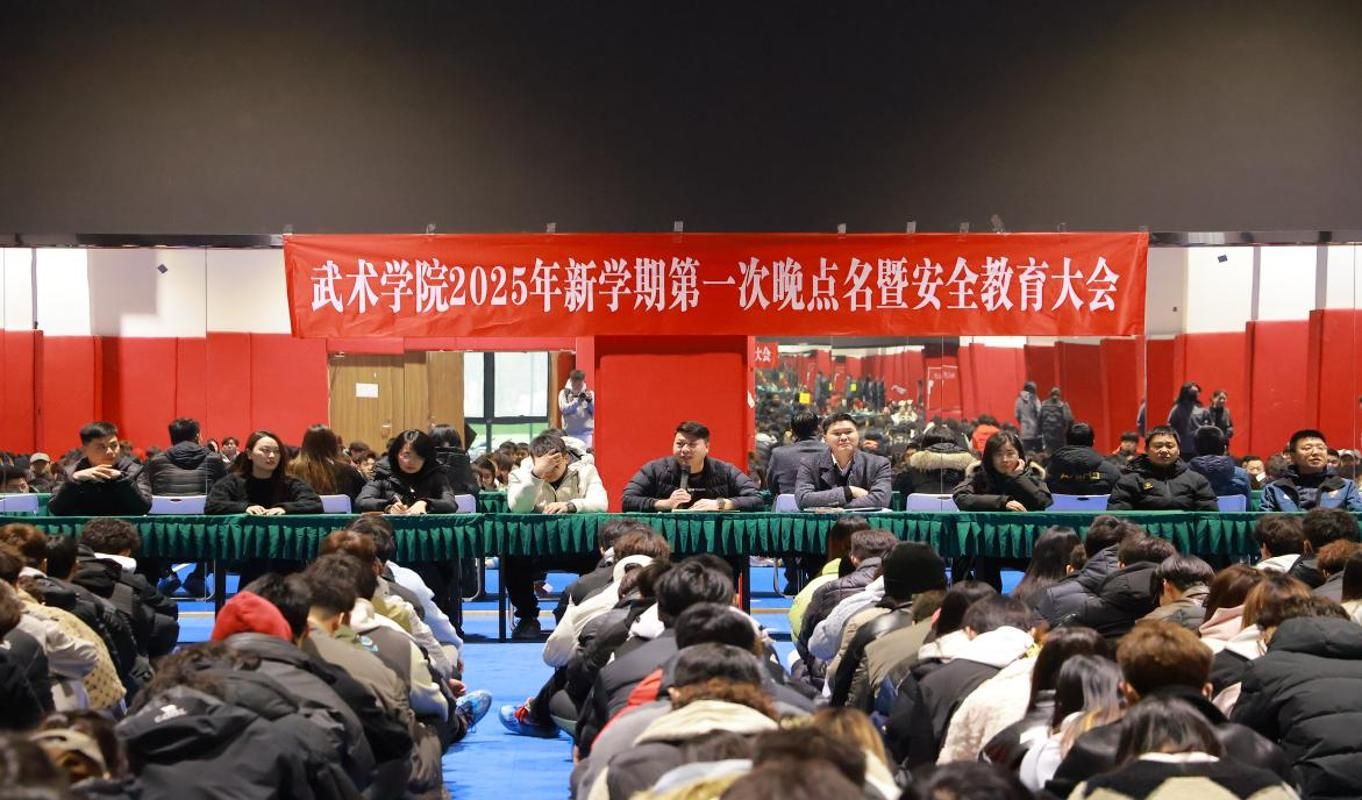 春风送暖启新程,武德赋能谱新篇。3月2日,武术学院在武术馆一楼隆重举行2025年新学期第一次晚点名暨安全教育大会。本次大会以“养成教育 武德赋能”为主题,旨在贯彻落实学校文明养成教育工作部署,为新学期开好局、起好步。学院党委书记罗兴山、辅导员李阳、邢星、刘洪源,以及全体班主任老师出席大会,全院本科生、研究生参加。