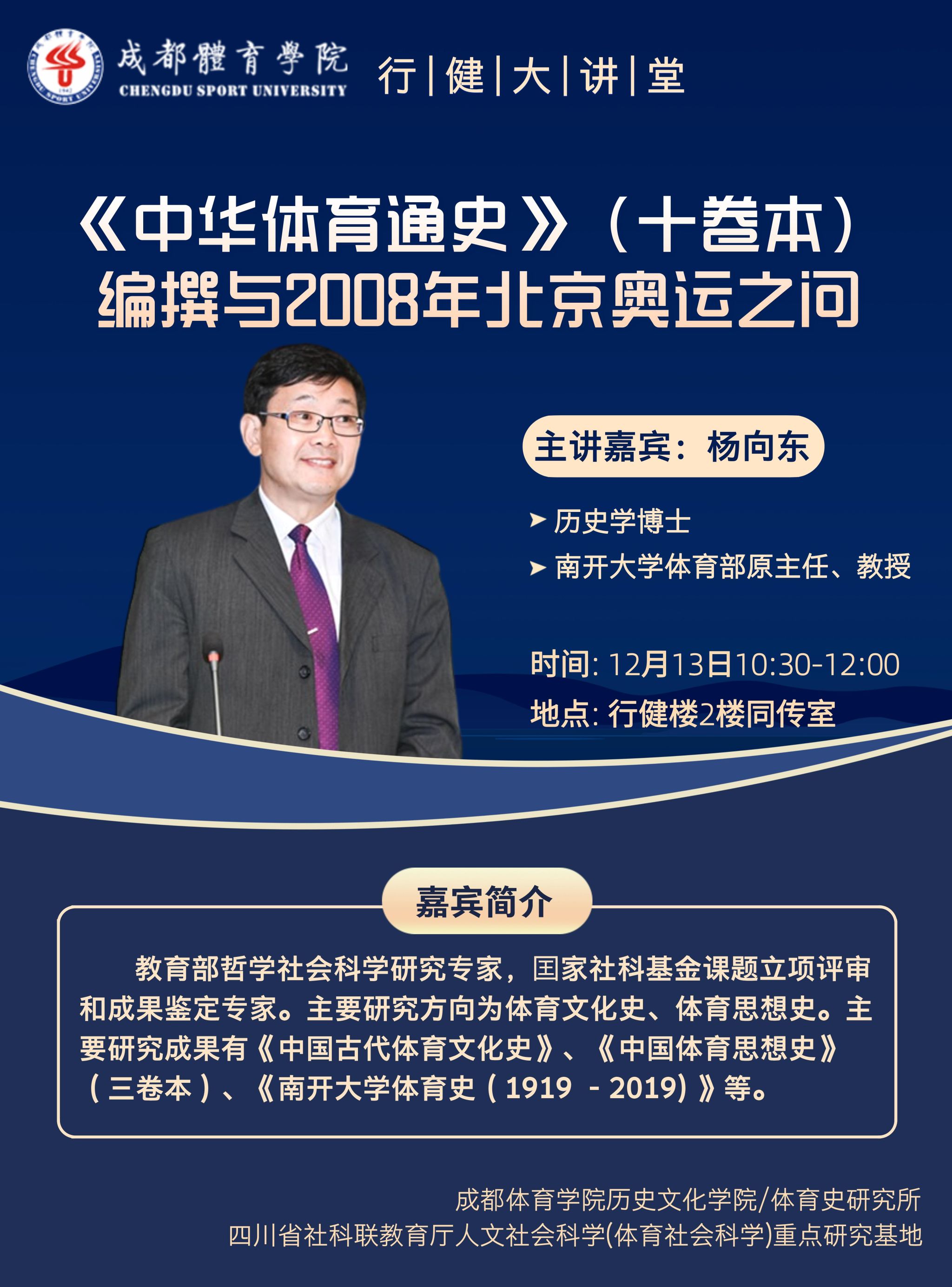 【通知】行健大讲堂系列讲座——《中华体育通史》(十卷本)编撰与2008年北京奥运之问